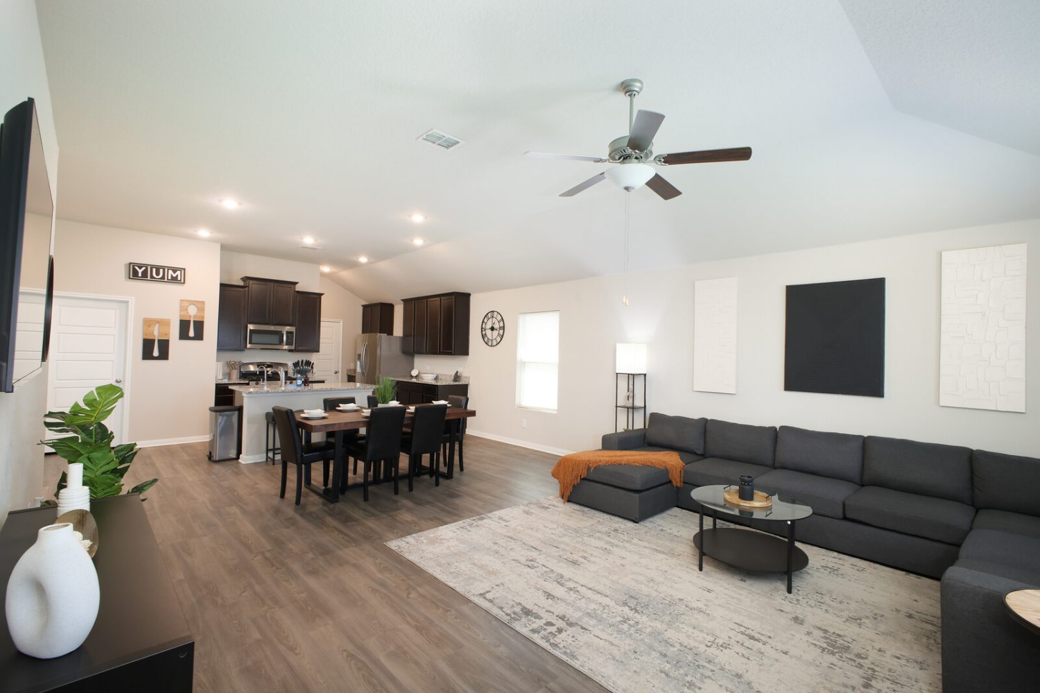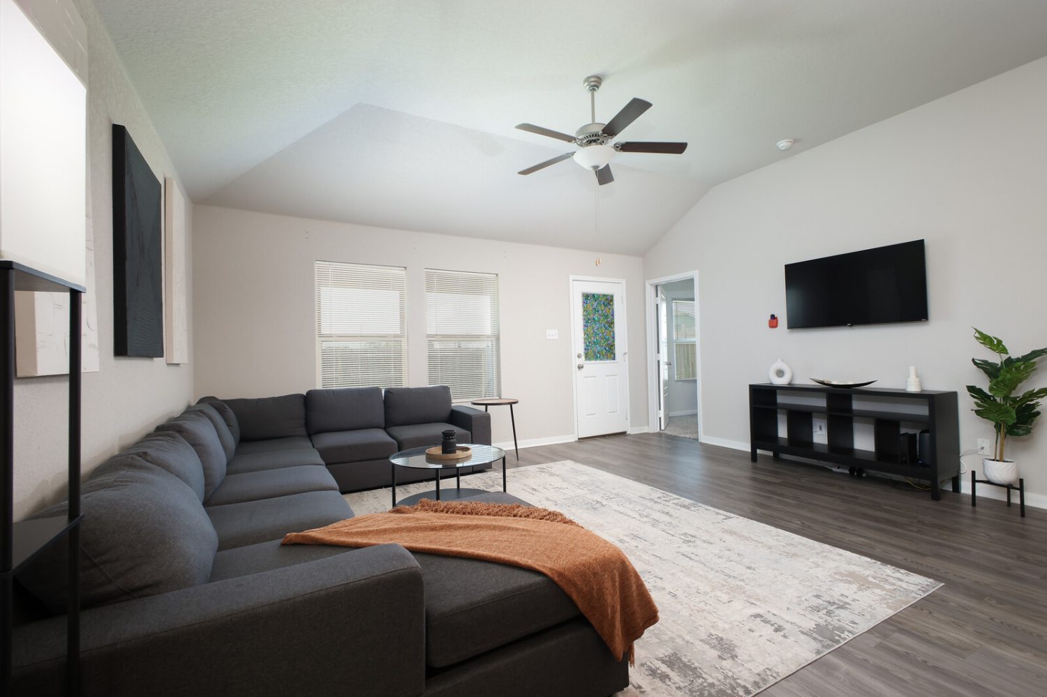 Enjoy a bright, open layout with modern furnishings, a fully equipped kitchen, and a comfortable living area ideal for relaxing or working remotely. The home features fast Wi-Fi, smart TVs, an in-home washer/dryer, and ample parking for your stay.
