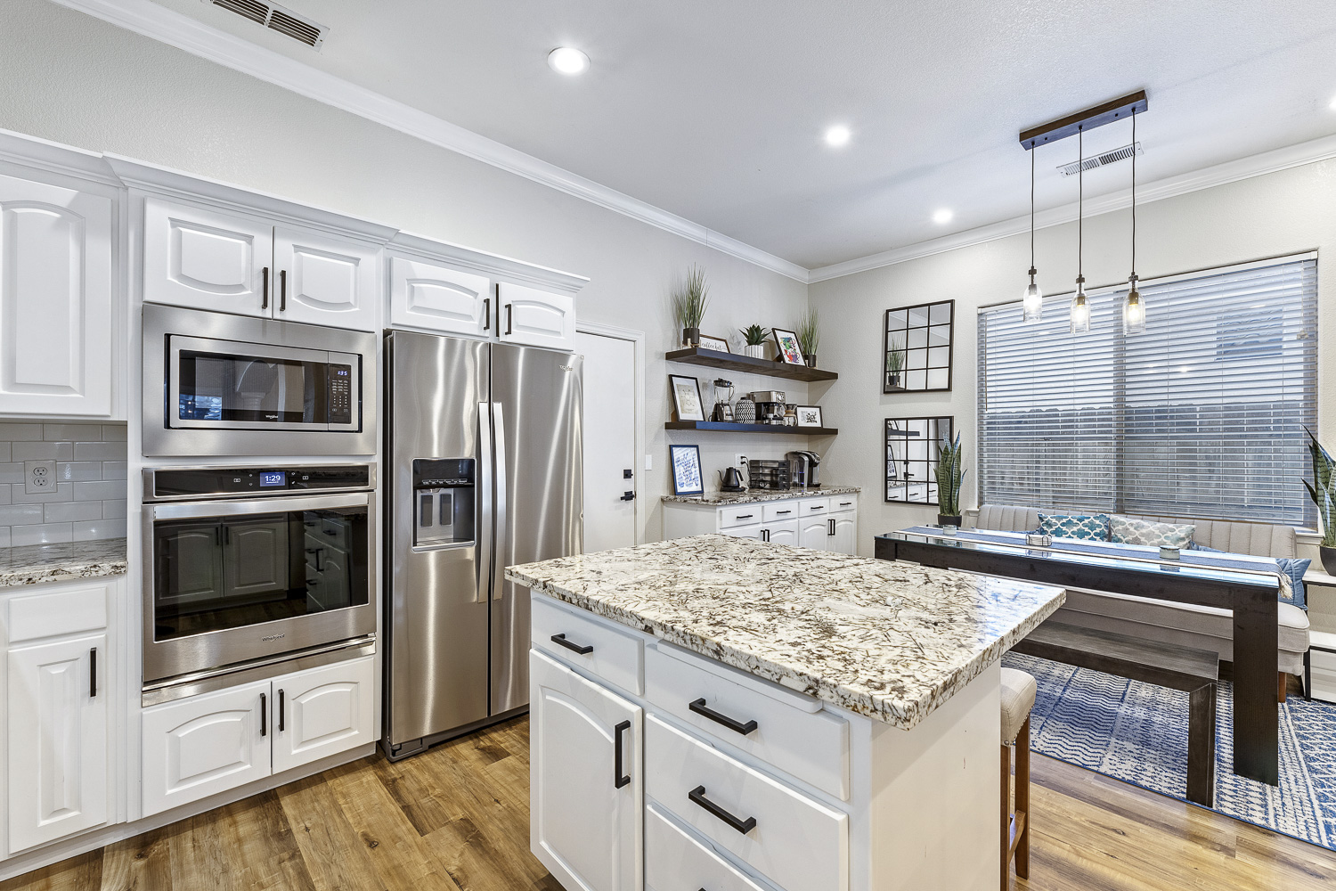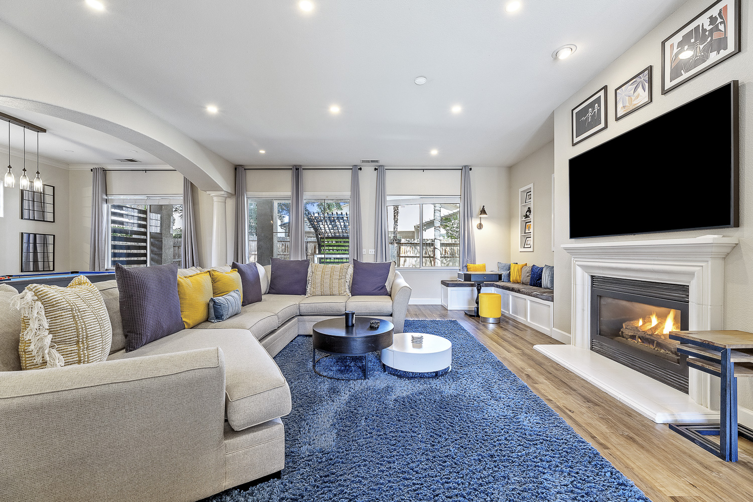 The home features an open floor plan that connects the living room, kitchen and dining areas. The main living room is an excellent place to relax and enjoy each other’s company. It is equipped with a 65" 4K Smart TV, powerful sound system and HIGH speed internet which allows you to stream cable TV and your favorite apps.