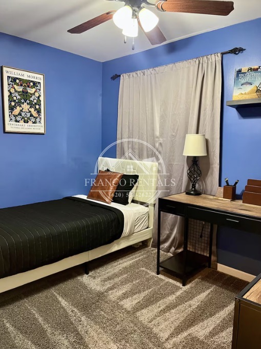 • Large fenced backyard. Ideal for pets or decompressing after long shifts. (Concrete patio with exterior furniture available)
