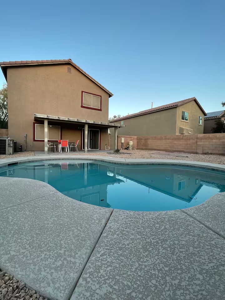 Nice 3-bedroom, 2-story single family home with beautiful swimming pool in a quiet neighborhood. Walking distance to park within gated community.