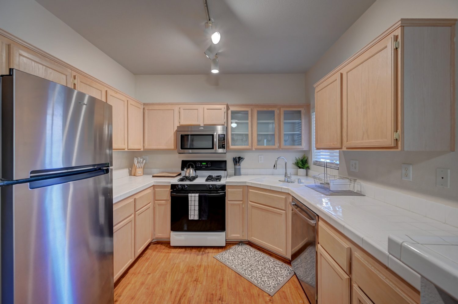 Enjoy your stay in this lovely Summerlin condo! Nestled in a gated community with a pool and gym. This three bedroom condo features beautiful hardwood floors, high ceilings, and a one car garage. All housewares, linens and Wi-Fi included your stay along with washer and dryer in unit! It's in a great location with quick access to freeways. It close to parks, shopping centers and dinning. Short commute to Mountain View, Centennial Hills, and Summerlin Hospital !