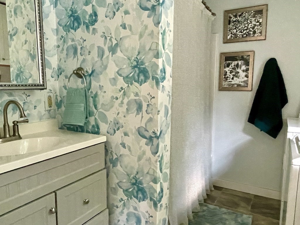 The home is a year round 1000 square foot bungalow on a private road in a lake community. We are minutes from Sturbridge and from the Brimfield Flea market. There are a few steps to walk down to the property. There is a fire pit out front and on the lakeside, there is a large yard. Inside, you will walk into a porch/mudroom area for convenience which leads into the updated kitchen with quartz cabinets and updated appliances. There is a full bathroom with bathtub and washer and dryer.Lots of wood floors anchor the open concept home. The sun drenched living room is spacious and features a comfortable l shaped sofa, a 50 inch screen smart tv and a leather club chair. 1 bedrooms offers a full size bed and a tv and the other bedroom has a daybed currently set up as a king size bed but can be set up as 2 twins if needed. Check back with us as we will be providing a third space in the loft with more sleeping accommodations. There is access to the lake across the street which is shared with a dock.