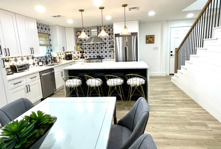 Stay in style at this family-friendly bungalow near Georgetown Square! Sleeps 8 with modern design, open living spaces, and a private backyard. Enjoy complimentary bikes to explore shops, dining, and Blue Hole Park. Perfect for families or groups seeking comfort, charm, and walkable convenience in the heart of Georgetown.