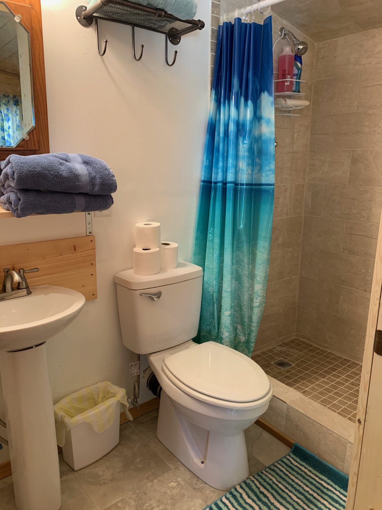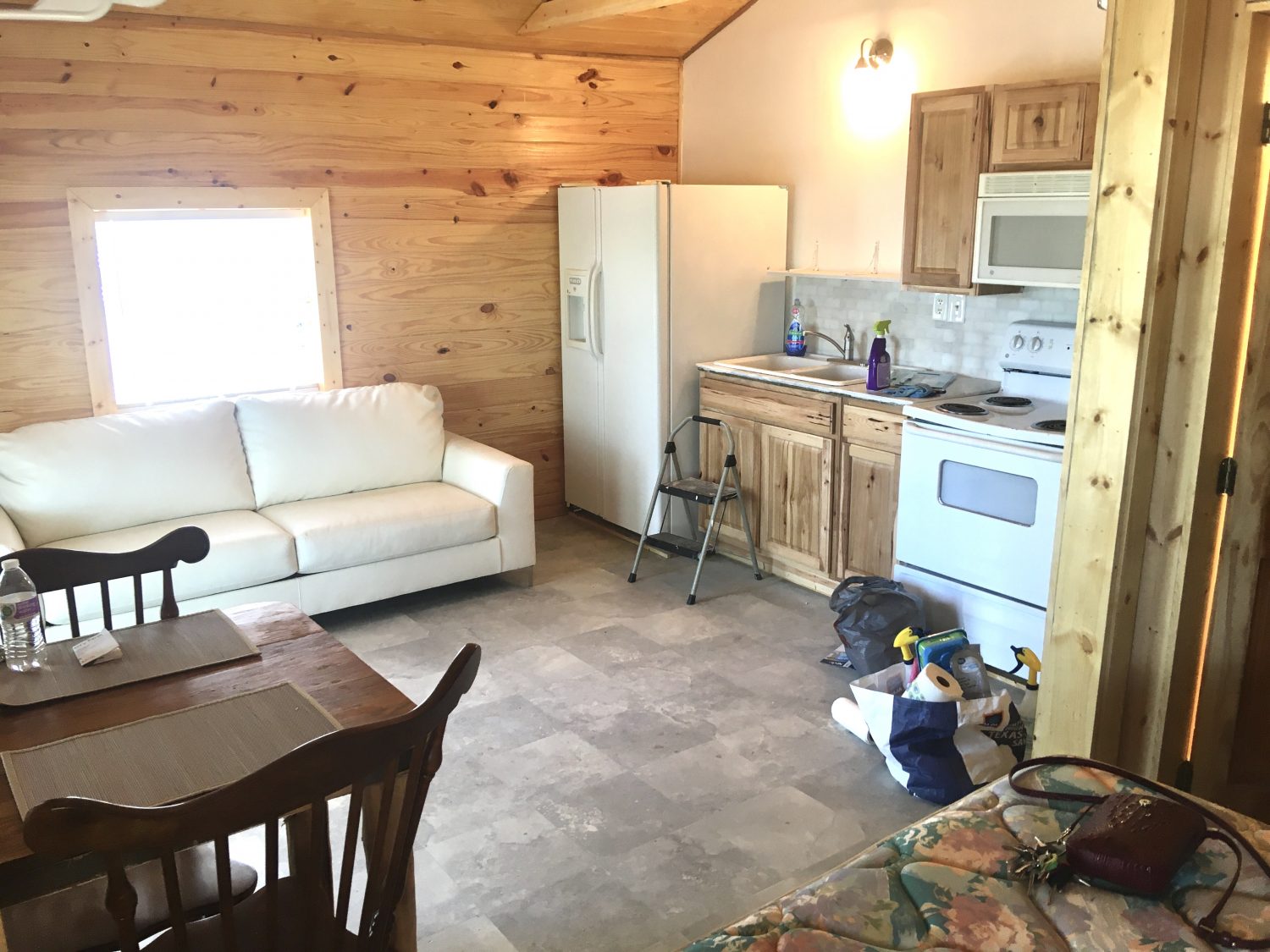 Our smallest fully furnished, 1 queen log bed, 1 bath, sleeps 2, with open studio type knotty pine cabin, full kitchen, high speed internet, all utilities included, smart tv, minisplit heat pump ac/heat, waterfront with 3 piers, porch overlooking lake, nature views, yet only 2 miles to Onalaska city, groceries, restaurants, etc.