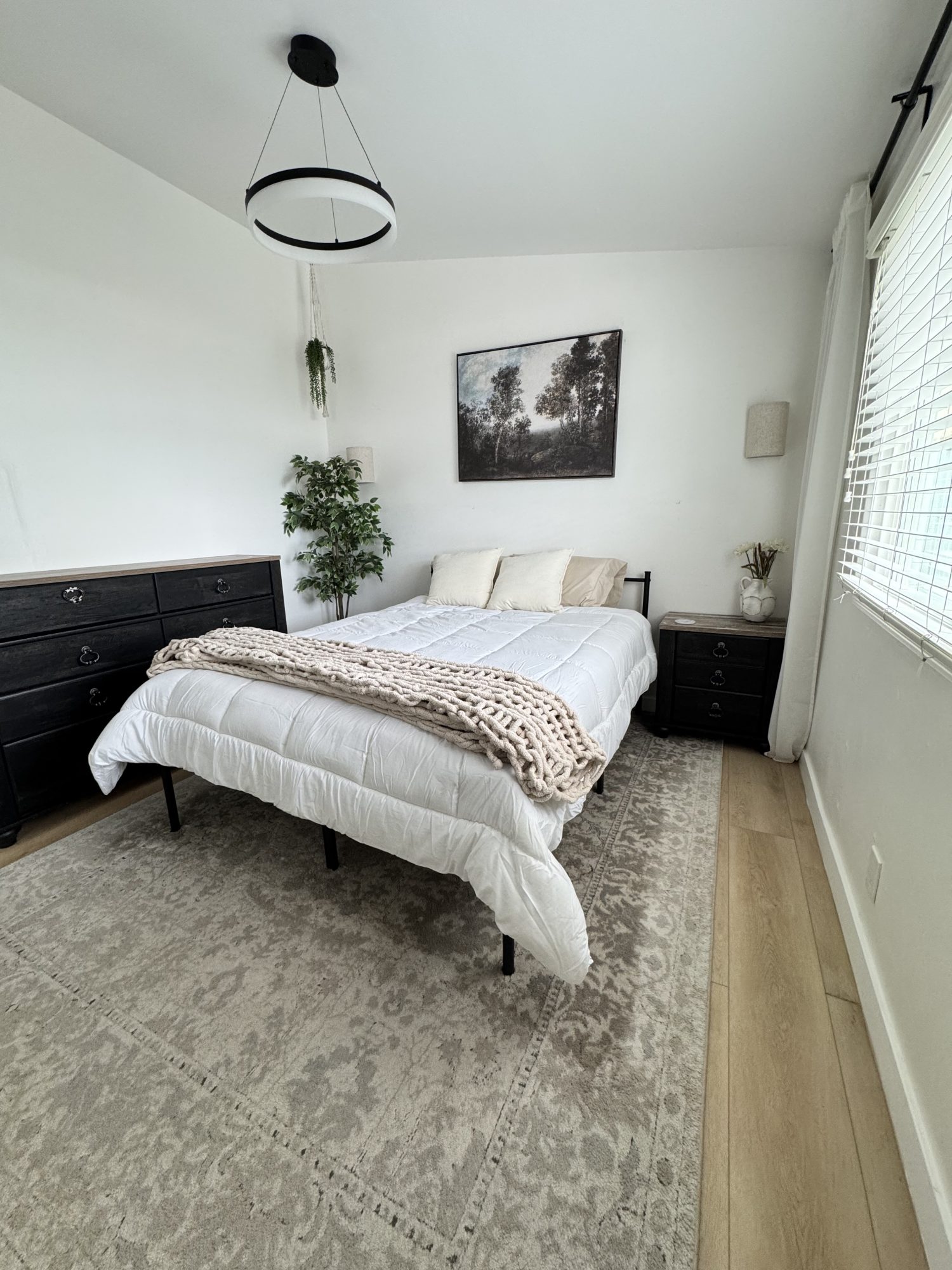 • Spacious primary bedroom with comfortable queen bed and ample closet space