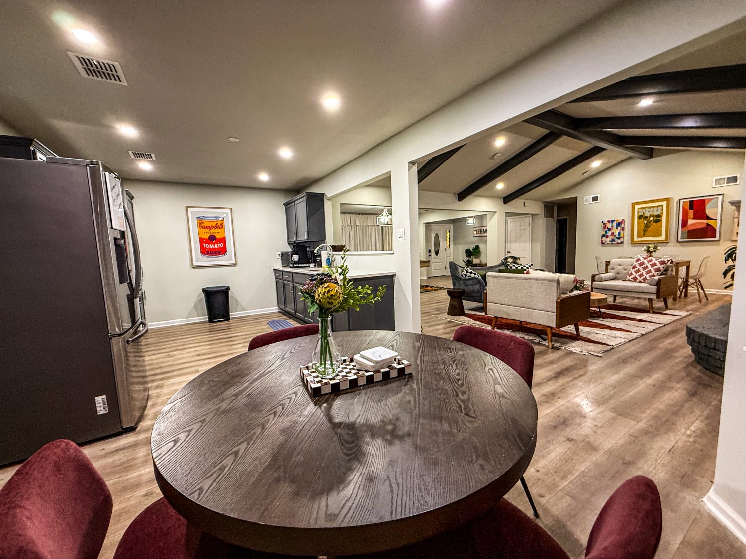 • Open living room with smart TV and sectional