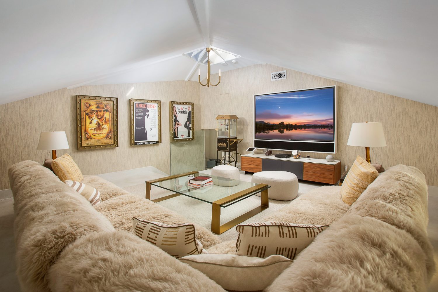 Inside, the home is flooded with natural light and warm Spanish-inspired tones, creating a bright and inviting atmosphere throughout. The oceanfront primary suite serves as a tranquil retreat, while two additional guest bedrooms, a private movie theater, and a stunning marble kitchen with center island complete the thoughtfully designed interior. This smart home is an entertainer’s dream, offering abundant spaces to relax, recharge, and gather.