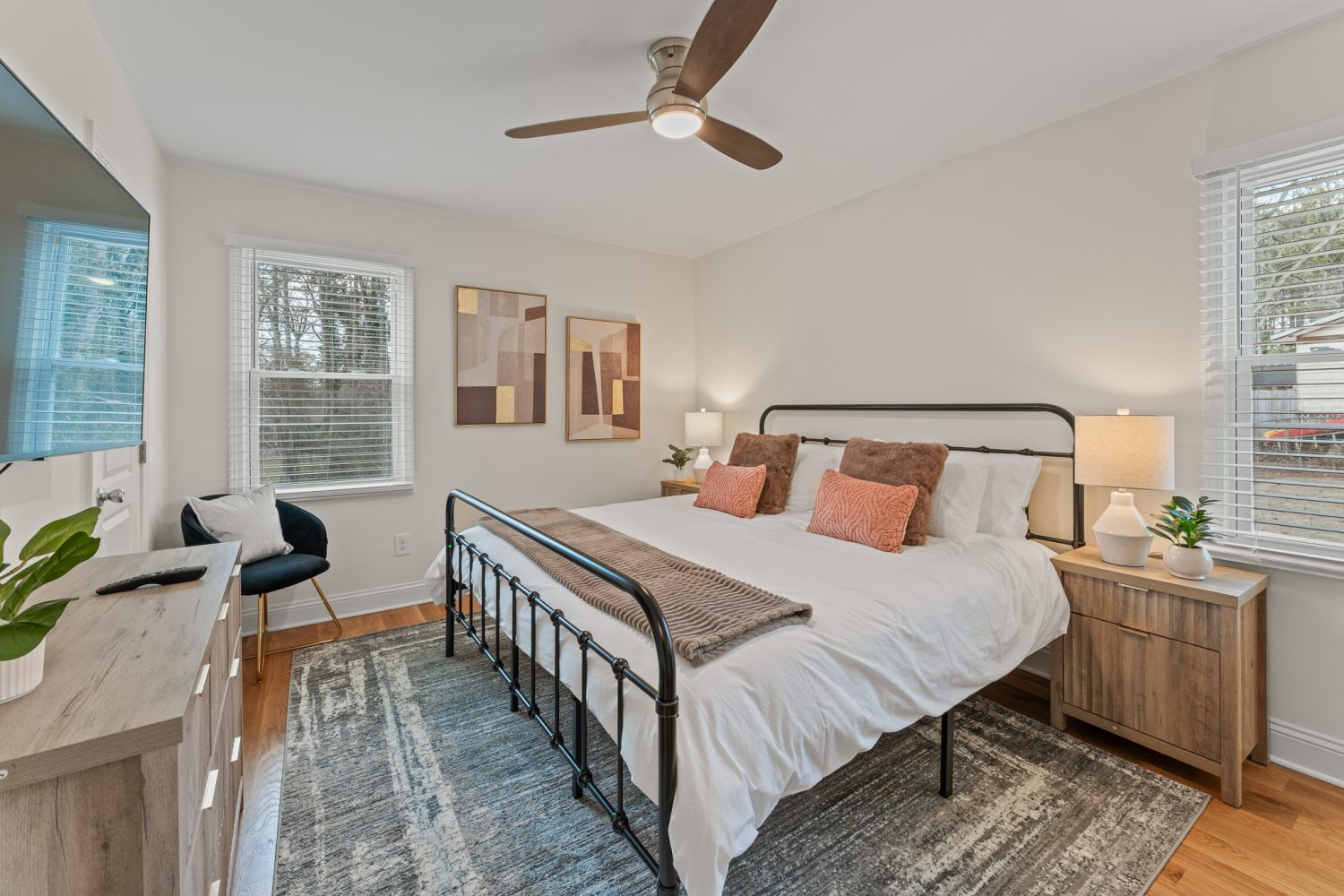 Extras: All-white linens, clean towels, and wifi connected smart TVs, and ultra-fast Wi-Fi for seamless streaming and work.
