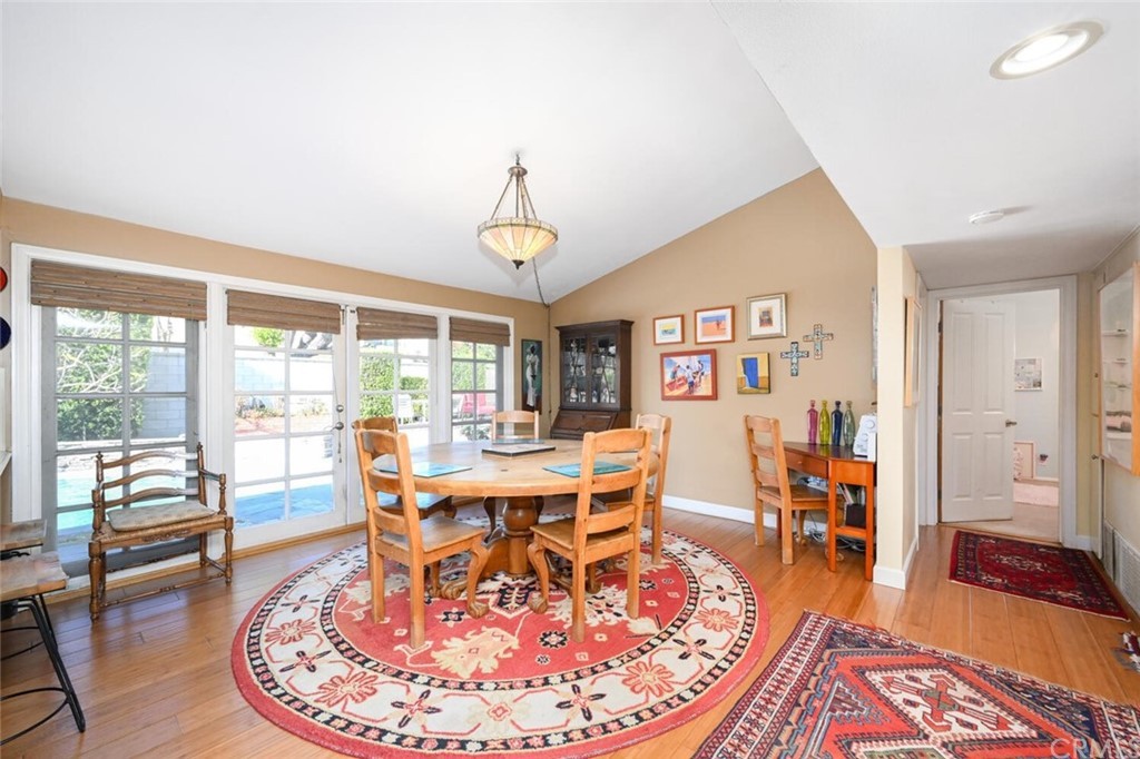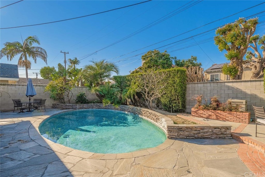 Rossmoor pool home with 3 bedrooms and 2 bathrooms. Open floorplan with lots of nice upgrades. Gourmet kitchen with custom cabinets, built in double oven, refrigerator and gas cooktop. Spacious bedrooms with vaulted ceilings and nice closet space. Duel pain windows, Central A/C and Heating and wood flooring. Private gated court yard with lush landscaping and block walls. Parklike backyard with custom stone decking and nice size pool. This home is a must see.