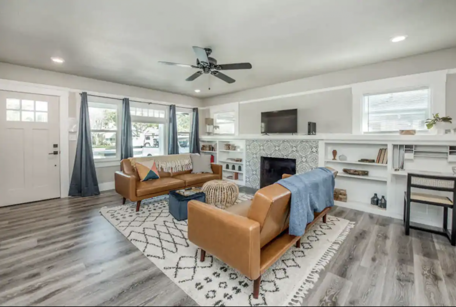 80.Charming bungalow with a modern kitchen, cozy living spaces, and stylish bedrooms. Features updated bathrooms, a dining area, and a welcoming exterior, perfect for a comfortable stay in Fresno.
