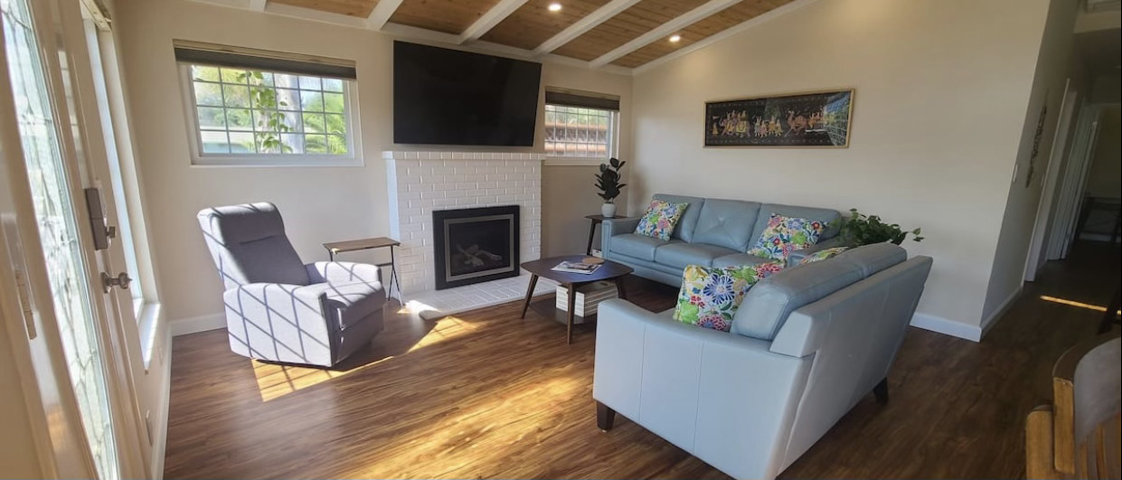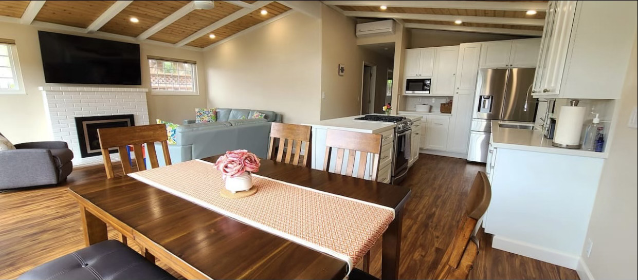 56.Bright and airy home featuring vaulted ceilings, a modern kitchen, and comfortable living spaces. Includes cozy bedrooms, updated bathrooms, and a charming outdoor patio, perfect for relaxation in Santa Cruz.