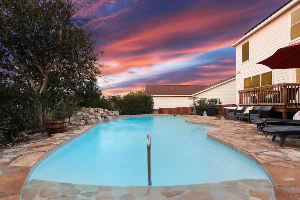 Peacefully nestled in a quiet, family-friendly neighborhood just outside San Antonio, this villa offers a private escape away from it all while also enjoying close proximity to all the best area attractions! Every inch of the home is bursting with character and luxury. Gather in the living room for a movie night, stay up late over board games in the lounge, then sleep soundly in one of the seven comfortable beds. The villa offers a variety of indoor and outdoor gathering spaces, plus a dedicated private workspace, perfect for teleworking. You’re sure to make unforgettable family memories within these walls and outside in the private, fully-fenced-in backyard oasis! Make it a cookout, and grill burgers under the stars as you lounge poolside while the kids splash away in the huge pool. We can’t wait to welcome you to your new favorite home-away-from-home and then send you off refreshed for whatever adventure lies ahead!