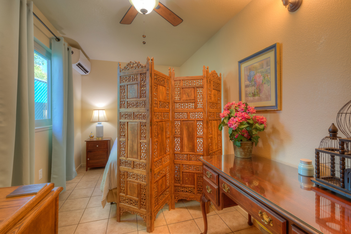 Home is on 1/4 acre that is fenced and cross fenced so great for pets. There is ample gravel parking areas. Large patio with patio table/chairs, cornhole boards, fire pit, Weber bbq, bird houses, faux 9ft windmill for outside enjoyment. Home has porcelain tile floors so no carpeting. High speed internet and two smart tv's. Exceptionally clean and comfortable. The theme is Country Cottage.