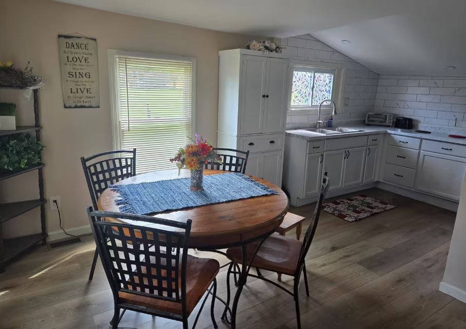 Cozy 2bd/1.5ba home in a peaceful corner of Indiana’s countryside, this newly renovated home offers a cozy retreat with all the comforts of modern living. The home features brand-new appliances & enjoyable living space. fenced backyard is ideal for pets to roam freely, & the inviting hot tub offers a soothing place to relax after a day of exploring.