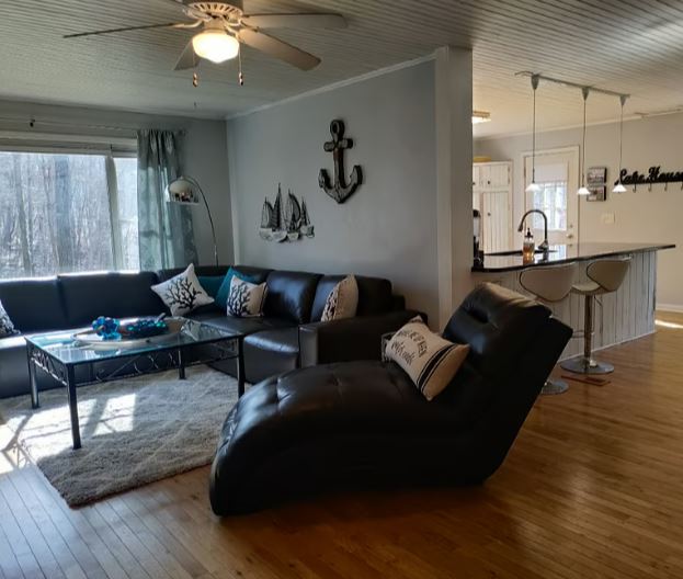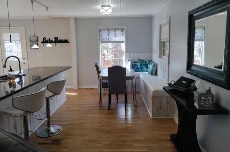 Cozy 3bd/2ba Lake home with nice views and deep water. Located in a quiet lake community off from Browns Bridge, and only a few miles from GA400, where shopping and restaurants are only a few miles away. Recently renovated to include hardwood floors, granite counter tops, white custom cabinets and stainless steel appliances, to name a few. Large deck, screened porch, and covered parking as well.