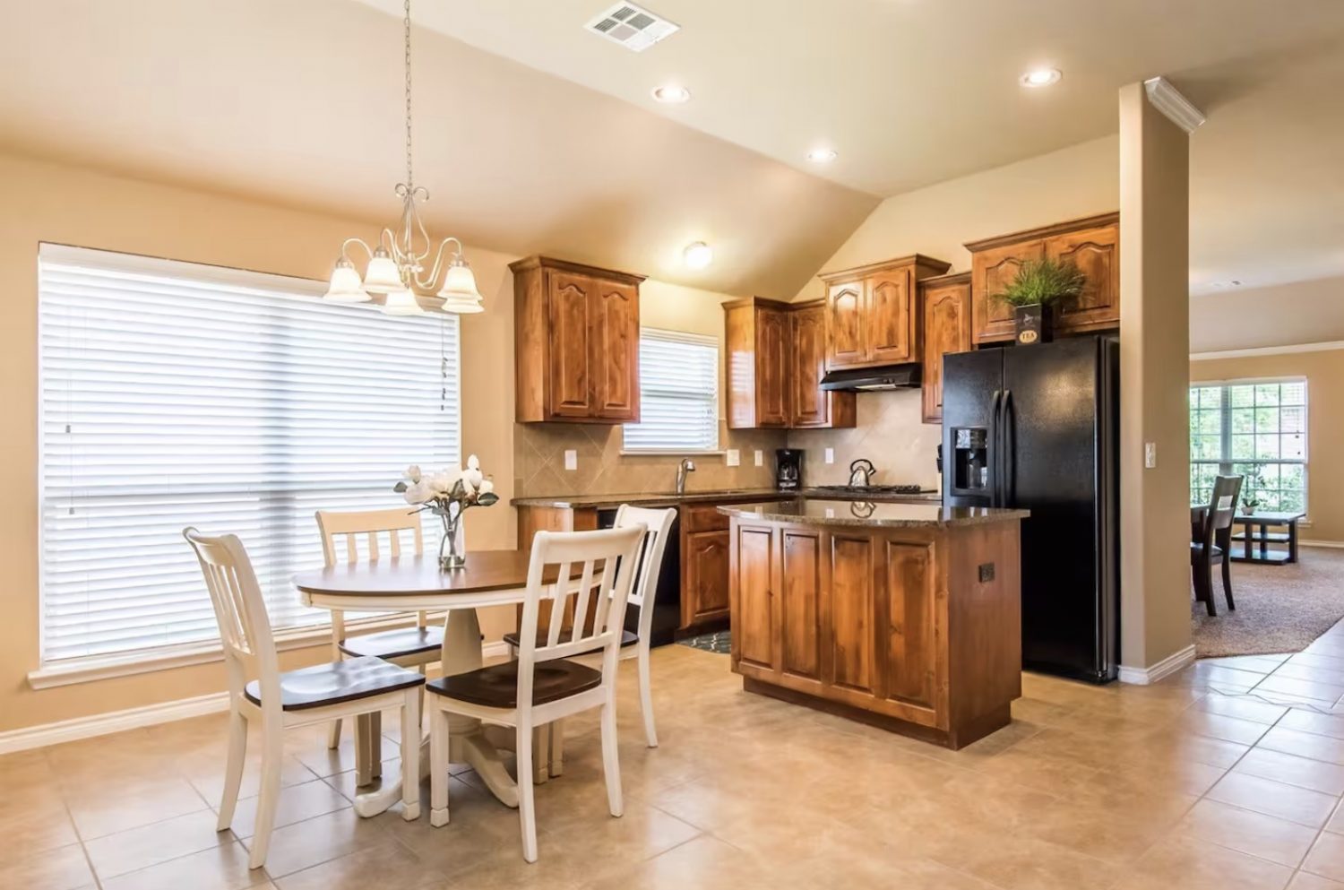 Discover your dream family home in the sought-after Rose Lake neighborhood! This 2,400 sq ft gem features 4 bedrooms, 2 baths, an office (easily a 5th bedroom), 2 living and dining areas, and a theatre room. Enjoy granite countertops, a gas fireplace, a lavish master suite, a storm shelter, and a covered patio with no rear neighbors. All utilities, internet, and lawn maintenance included. Perfect for relocations, corporate travel, or family getaways.