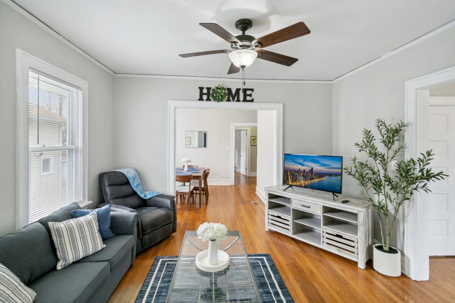 The cozy primary bedroom offers a King-size bed, a TV for catching your favorite late-night shows, and dual nightstands and lamps for reading a few pages in your book or writing in your journal. The first guest room offers a queen-size bed and the second has a twin XL-over-Queen bunk bed. In addition, The living room offers a pull out sofa bed for additional guests.