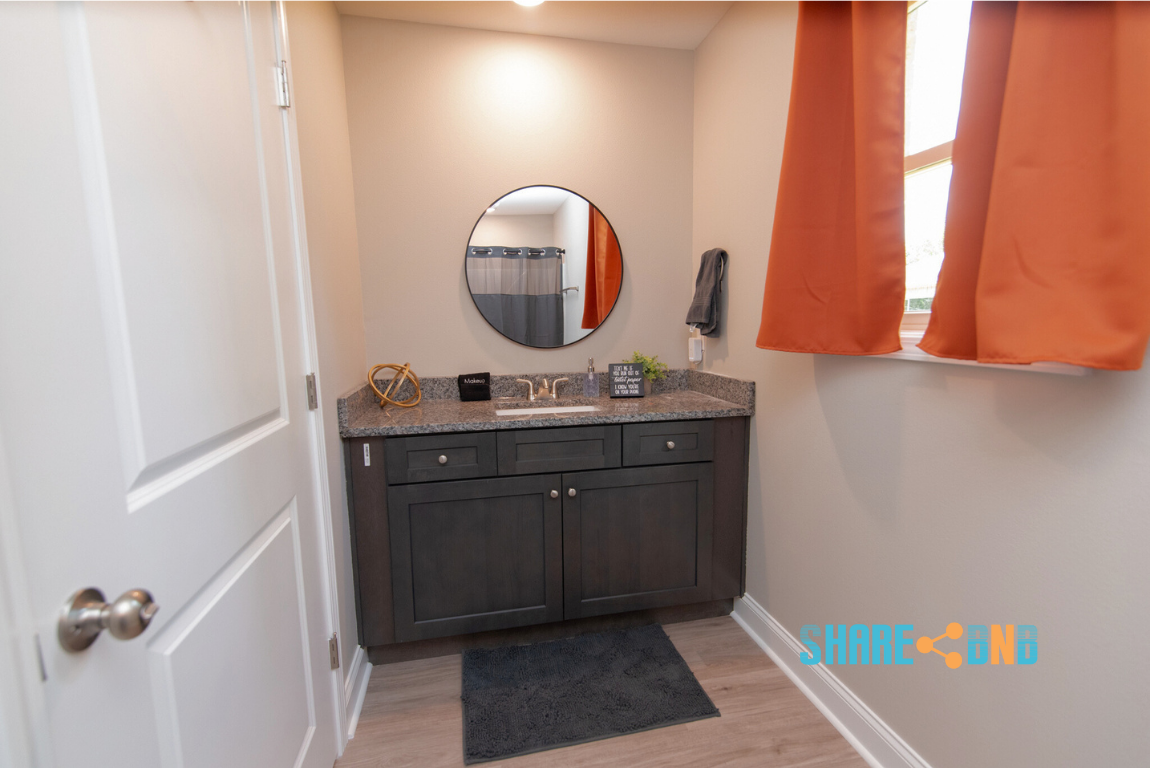 The home features two full bathrooms, making it easy for families or groups to get ready and unwind.