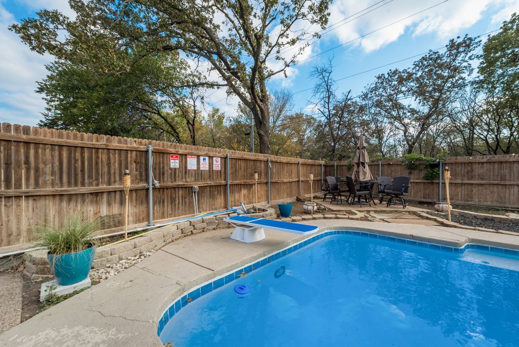 backs up to Greenbelt and trails. great for all ages but the pool is not gated and is very deep. a signed waiver is required.