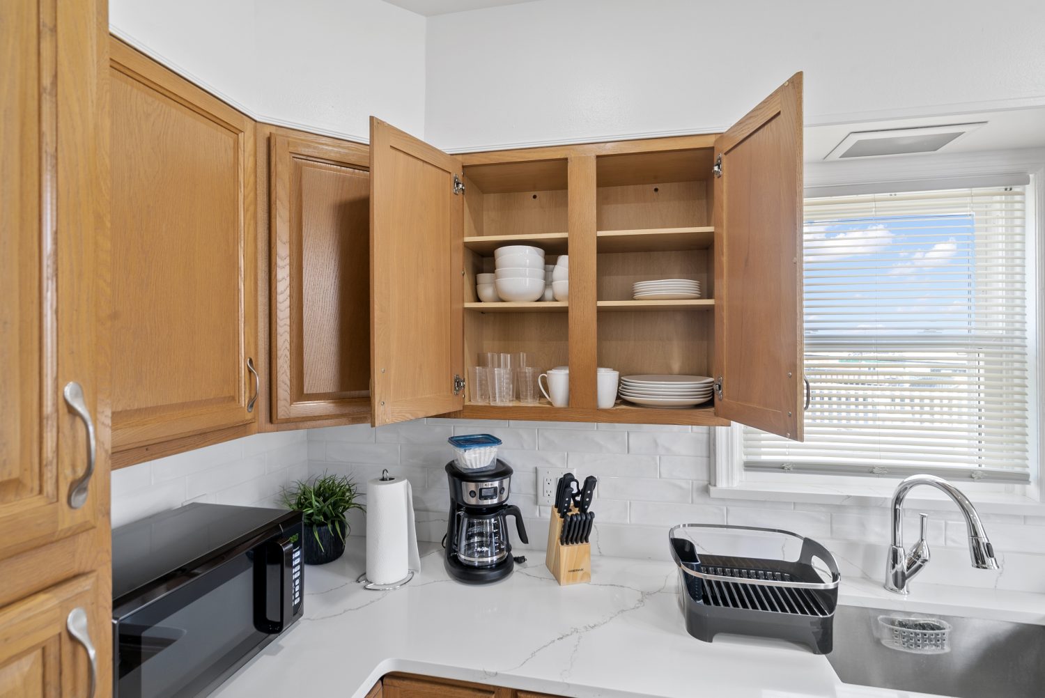 - Kitchen: Fully equipped kitchen with oven, stove, microwave, fridge/freezer, cookware, utensils, coffee maker, and dining setup for 6