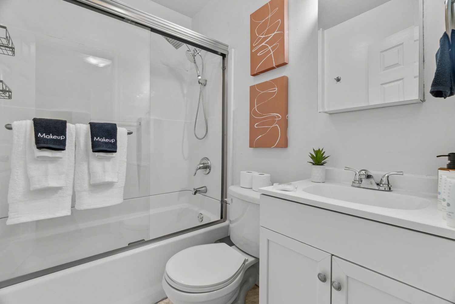 Stocked with fresh towels, toiletries, body wash, shampoo, hairdryer and thoughtful touches like “Makeup” towels and extra rolls stocked.
