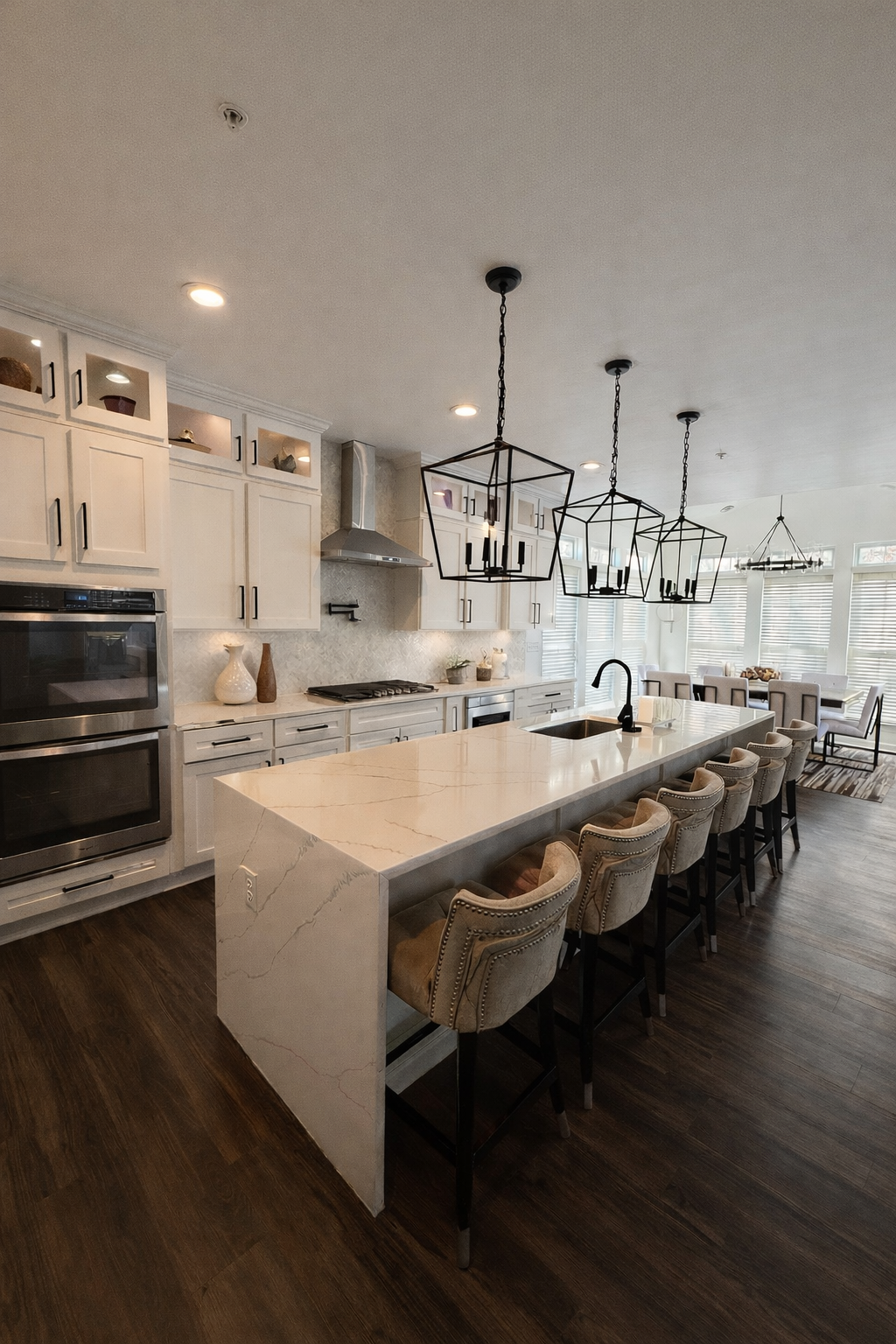 Experience luxury in this well appointed 4 bed/3 bath single family home in the newly developed Villages of Savannah community! This nicely manicured brick front colonial has a 3 car garage with bike storage, custom exterior uplighting, ample driveway parking, and tons of curb appeal! Looking for a fully renovated property with designer finishes? Look no further! Prepare to be wowed by the stunning open concept floor plan flooded with natural light and high end touches. Newly renovated gourmet kitchen, new luxury wide plank flooring, new designer lighting with dimmers, new fixtures, and freshly painted throughout! Gorgeous modern farmhouse style kitchen features stainless steel appliances, new microwave pull out drawer, new white shaker style cabinets, under and upper cabinet lighting, double oven, new pot filler, new hood, new mosaic marble herringbone backsplash, new 12 foot Calcutta Quartz waterfall island (with outlets conveniently located), and a new custom bar area with wine cooler! Stunning sunroom off of the kitchen boasts vaulted ceilings and wall to wall windows for ample natural light. The open concept great room features tray ceilings, new recessed lighting, built in ceiling speakers, and a chique custom stone fireplace which creates the perfect environment for relaxing or entertaining. The upscale formal dining room with a custom accent wall, formal living room, main level study, and newly renovated powder room with shiplap complete the main level living. Upstairs you'll find 4 bedrooms, a renovated full bathroom with double vanities, and a conveniently located laundry room with oversized Samsung washer and dryer. The expansive upper level primary suite features built in ceiling speakers, a sitting room, and walk in "his & hers" closets that flow into the en suite primary bathroom. The primary spa bath oasis includes double vanities (plus a bonus makeup vanity), private toilet room, soaking tub, and wrap around ceramic tile shower with dual shower heads. This home comes complete with a fully fenced in backyard with vinyl privacy fencing, storage shed, brick patio with built in lighting, and a fire pit that creates the perfect ambiance! Centrally located near major commuter routes, grocery, dining, and entertainment.