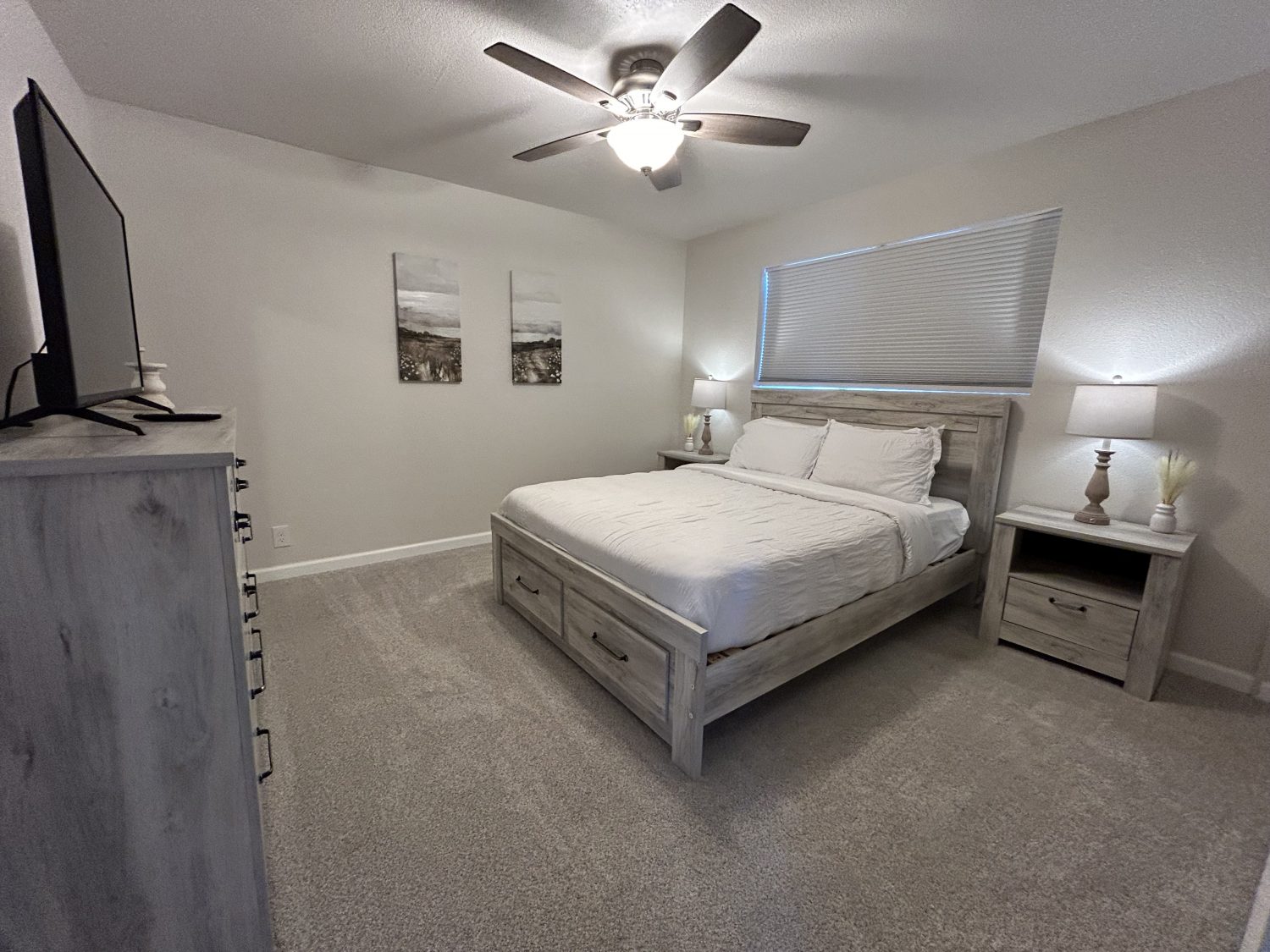 The Desert Rose is located close to rotary park and riviera state park where many events take place during the year. Havasu Regional Medical Facility is also close at only an 8 minute drive. For those who like to hike or take strolls, a trail that spans most of the Lake Havasu waterfront areas is accessible from right in front of the property. Comfortable comforters on each bed and optional sofa sleeper for visitors or larger families. Fully upgraded apartment with a very spacious shower equipped with dual shower heads for a spa like experience. Each bedroom has individual queen beds for privacy and complimentary live and streaming television services available.