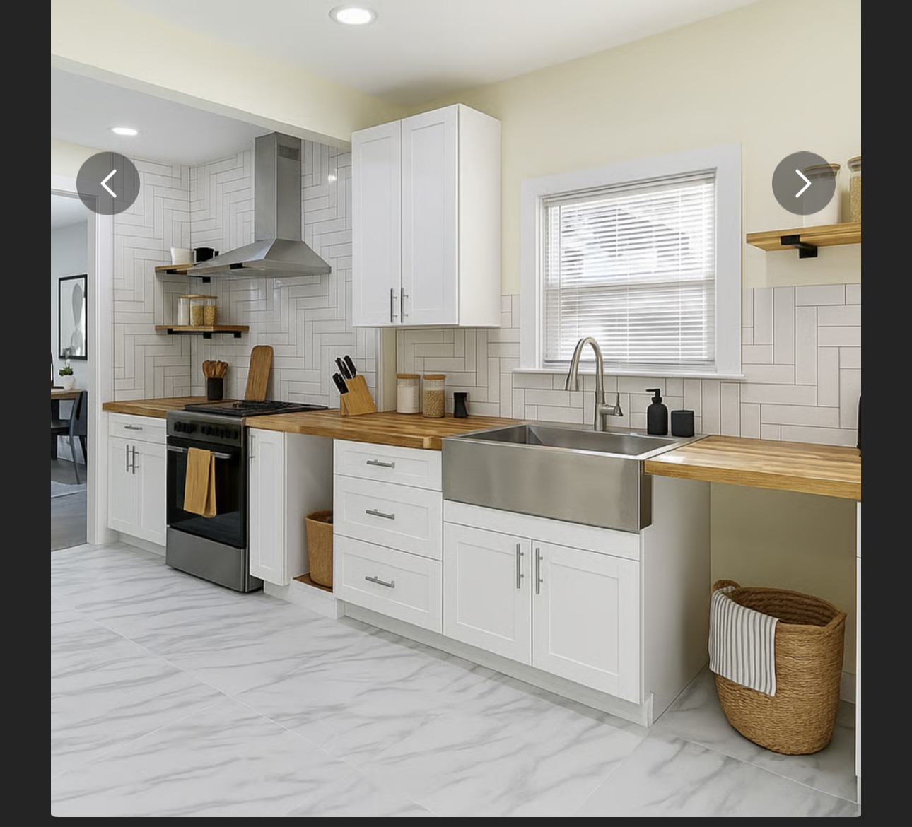 Inside, youll find a bright open-concept living and dining area, designed with elegant finishes and plenty of natural light. The fully updated kitchen features sleek cabinetry, wood countertops, stainless steel sink, and modern appliancesperfect for cooking and entertaining.