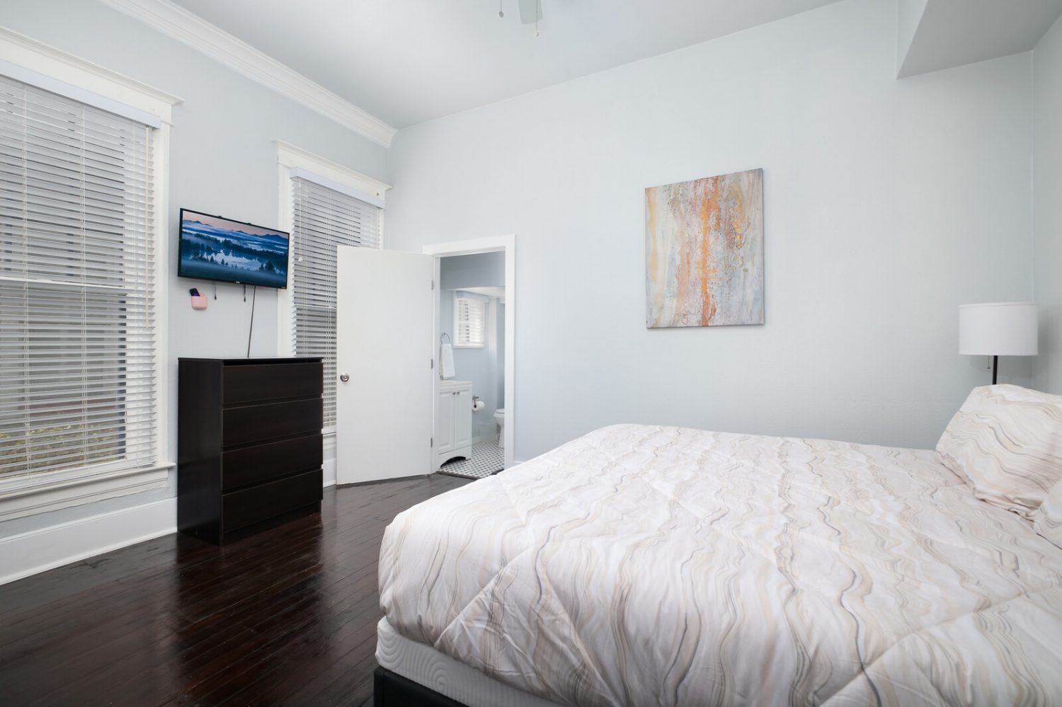 Comfortable Bedroom & Bath – Quality bedding, sleek finishes, and hotel-level comfort.