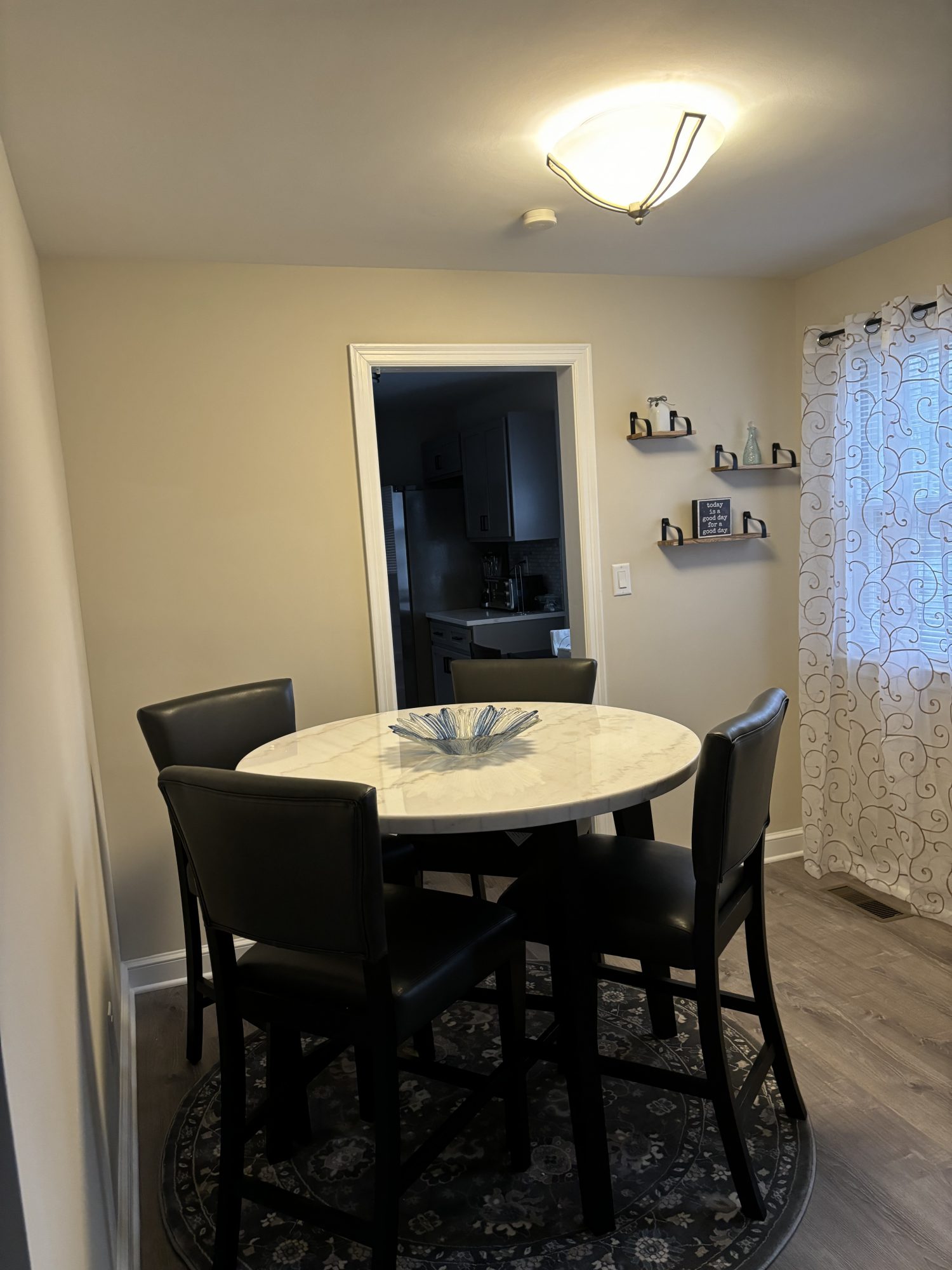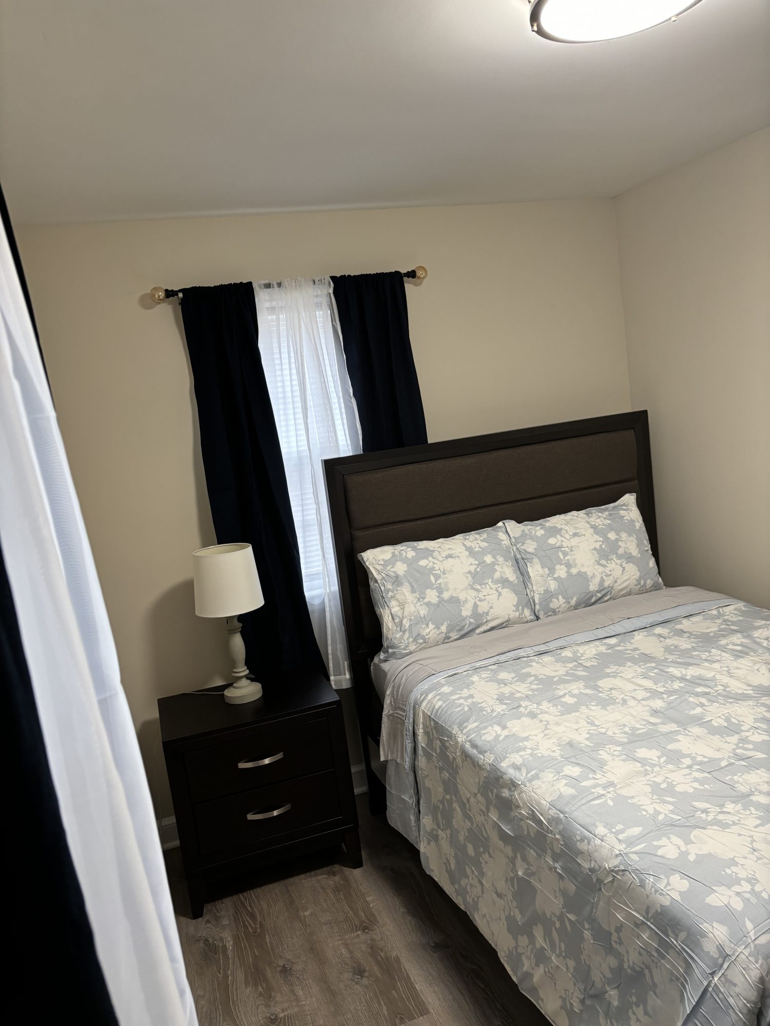 This property has been recently renovated and is a fully furnished 4 bedroom, 2 full bathroom house in a very desirable quiet neighborhood. It does have two bedrooms and a full bathroom on the first floor along with a living room, dining area and modern fully applianced kitchen. This home also has a large private driveway and backyard. In the backyard there is a nice sitting area and BBQ grill.