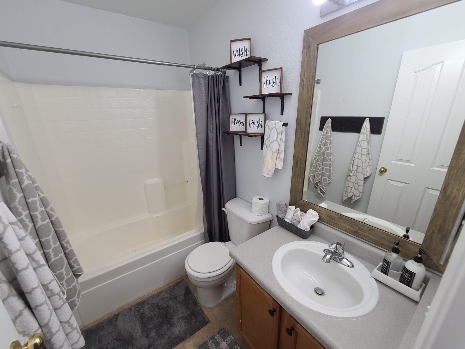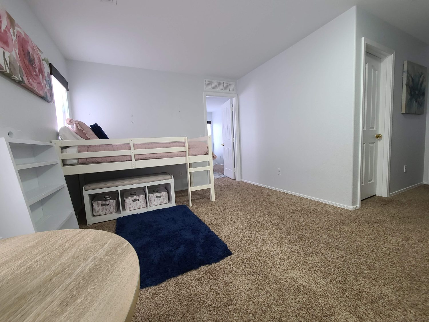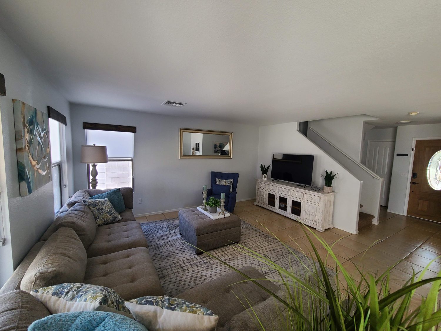 All appliances provided, including washer/dryer, grill, etc. Large internet connected smart TVs in each bedroom and living room. 2 car garage and a nice neighborhood. Clean and ready to go.