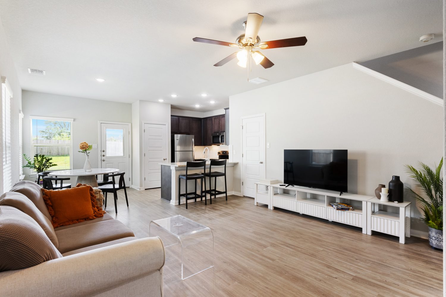 Discover comfort and convenience in this 3-bedroom, 2.5 bath duplex, offering approximately 1,300 square feet of thoughtfully designed living space. Built recently and cared for with attention to detail, this home is filled with natural light and comes complete with all appliances, making settling in effortless from day one. Located in a prime, central area just minutes from popular shopping spots, dining, parks, and major roads, this home makes everyday life more accessible and enjoyable. The main floor features a bright, open layout, perfect for relaxing or hosting friends. The kitchen is outfitted with sleek appliances, plenty of storage, and a breakfast bar that opens into the cozy living room, creating a seamless flow. Upstairs, you'll find three spacious bedrooms, each offering plenty of room for rest, work, or creativity. The primary suite includes its own private bath, providing a peaceful retreat at the end of the day. Every room is generously sized and filled with natural light. This townhouse is also zoned to NBISD, with award winning schools. Step outside to enjoy a fully fenced backyard, offering a quiet, private space to relax or unwind. Whether you're sipping your morning coffee or catching the sunset, it's your own little outdoor haven. This move-in-ready rental combines modern living, great space, and a prime location, all in one inviting package.
