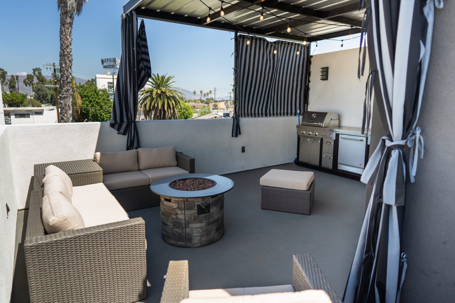 OUTDOOR SPACE: PRIVATE Rooftop Deck with OUTDOOR KITCHEN, OUTDOOR FIREPLACE, BBQ Grill and Outdoor Seating/Furniture, and Balcony