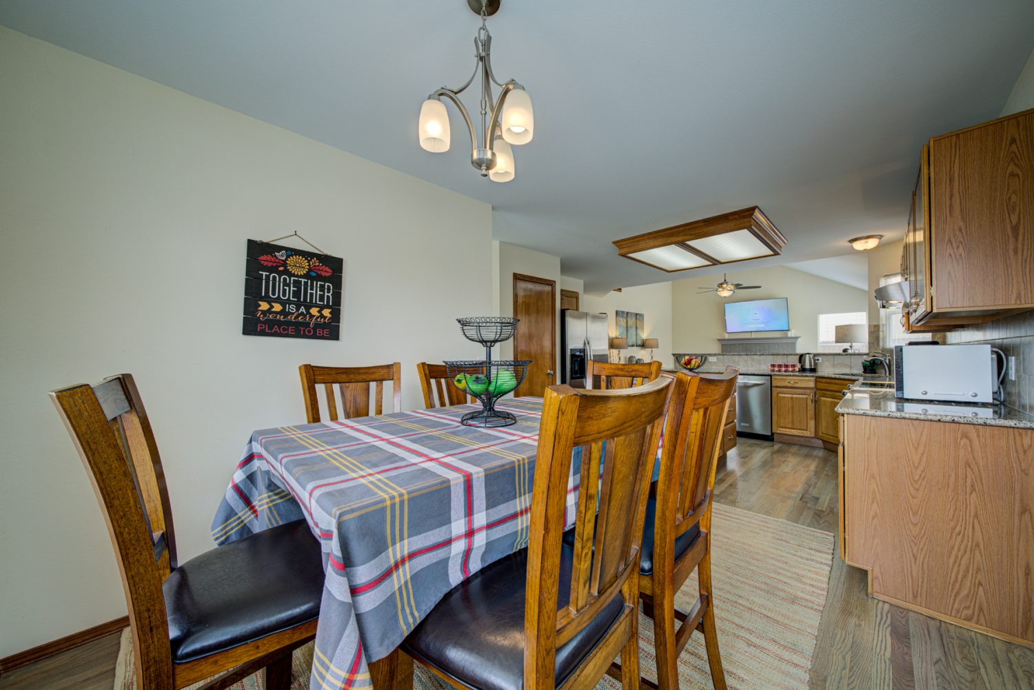 This home includes a spacious kitchen, open concept living room, dining and kitchen. We have a game room downstairs with a pool table, workout area, and space for all ages to play and hang out. Large-screen Smart TV ready for gaming or watching an amazing movie. The primary en suite includes a jetted tub and room darkening shades.