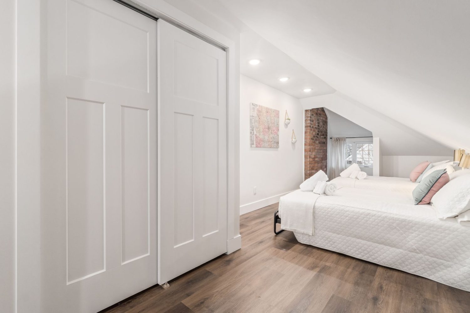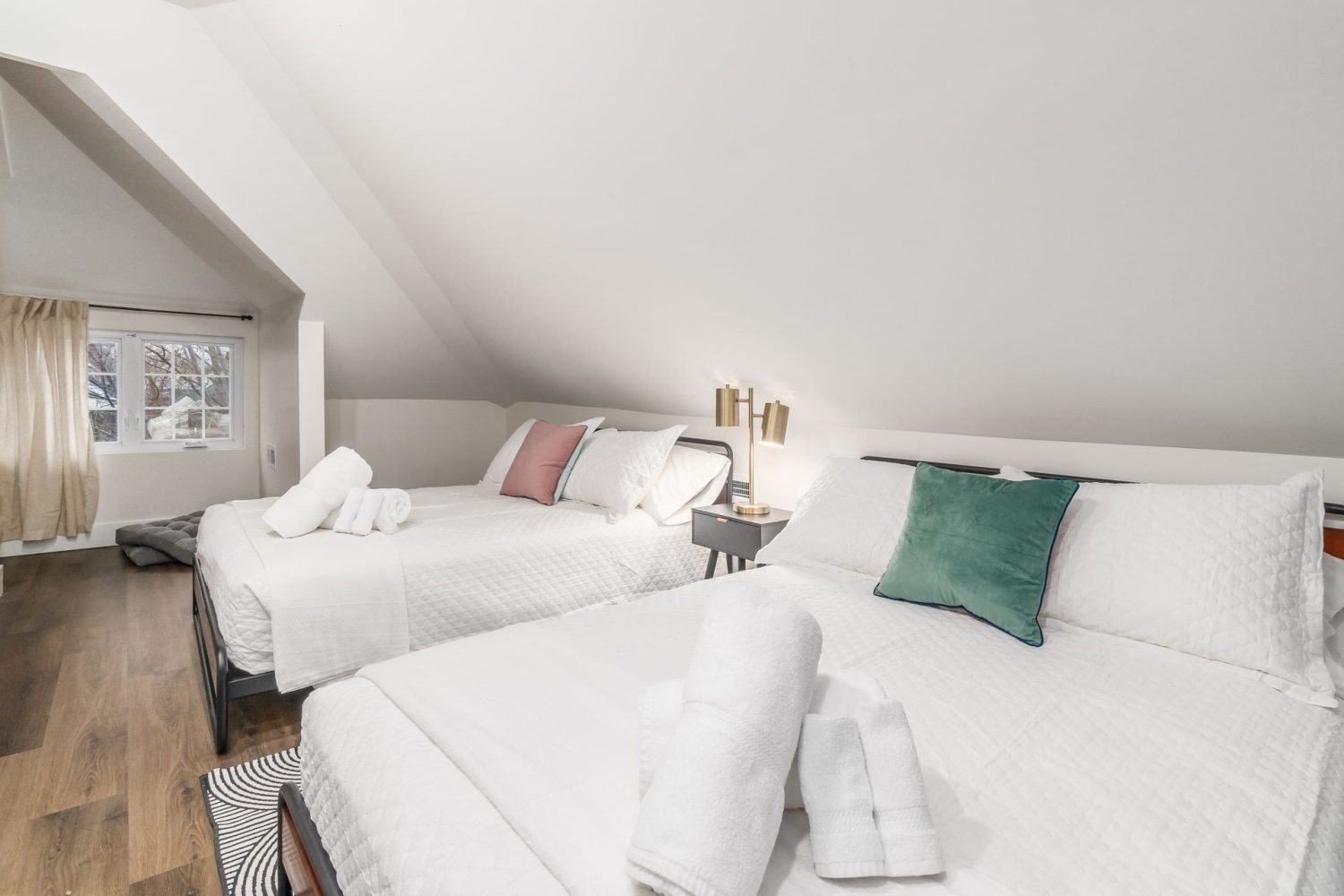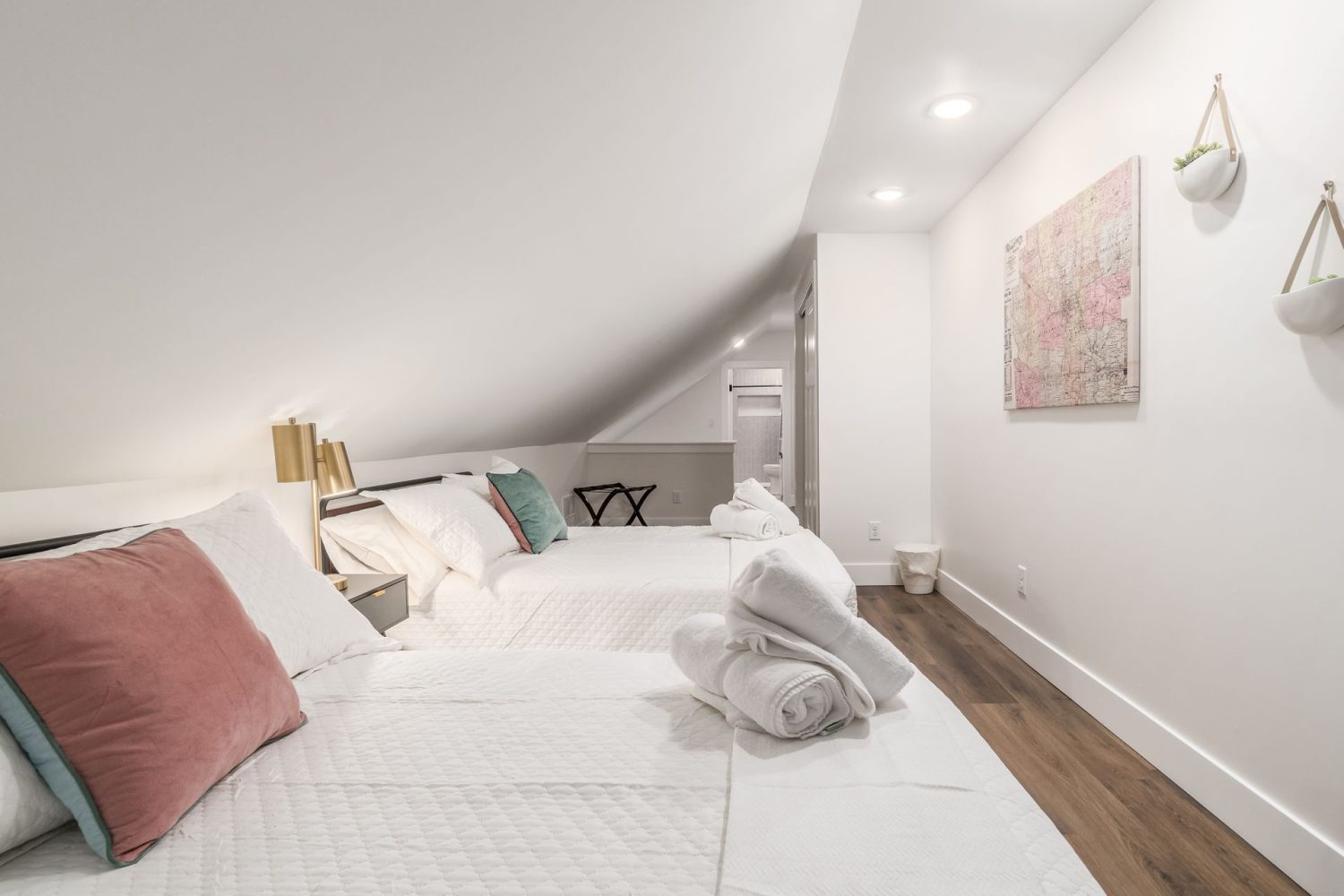 The 3rd floor packs a large bedroom with 2 queen beds, and a full bathroom with walk-in shower as well.