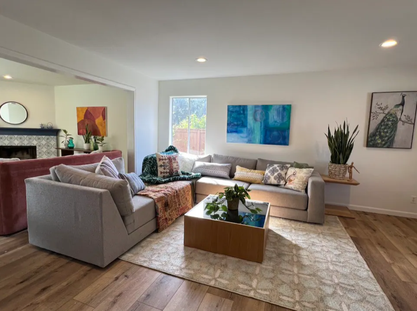 Spacious, sunny hilltop home with, 5 bedrooms, 4 full baths, mountain views, and a sparkling pool/spa. Beautifully remodeled with soaring ceilings, new kitchen. Bright and cheerful with lots of room!