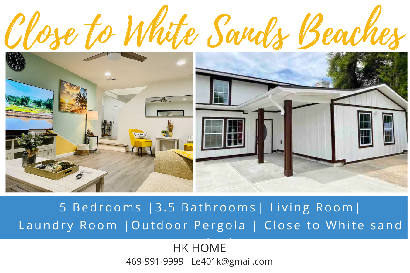 Fully Furnished 5-Bedroom Home Near White Sands Beachs