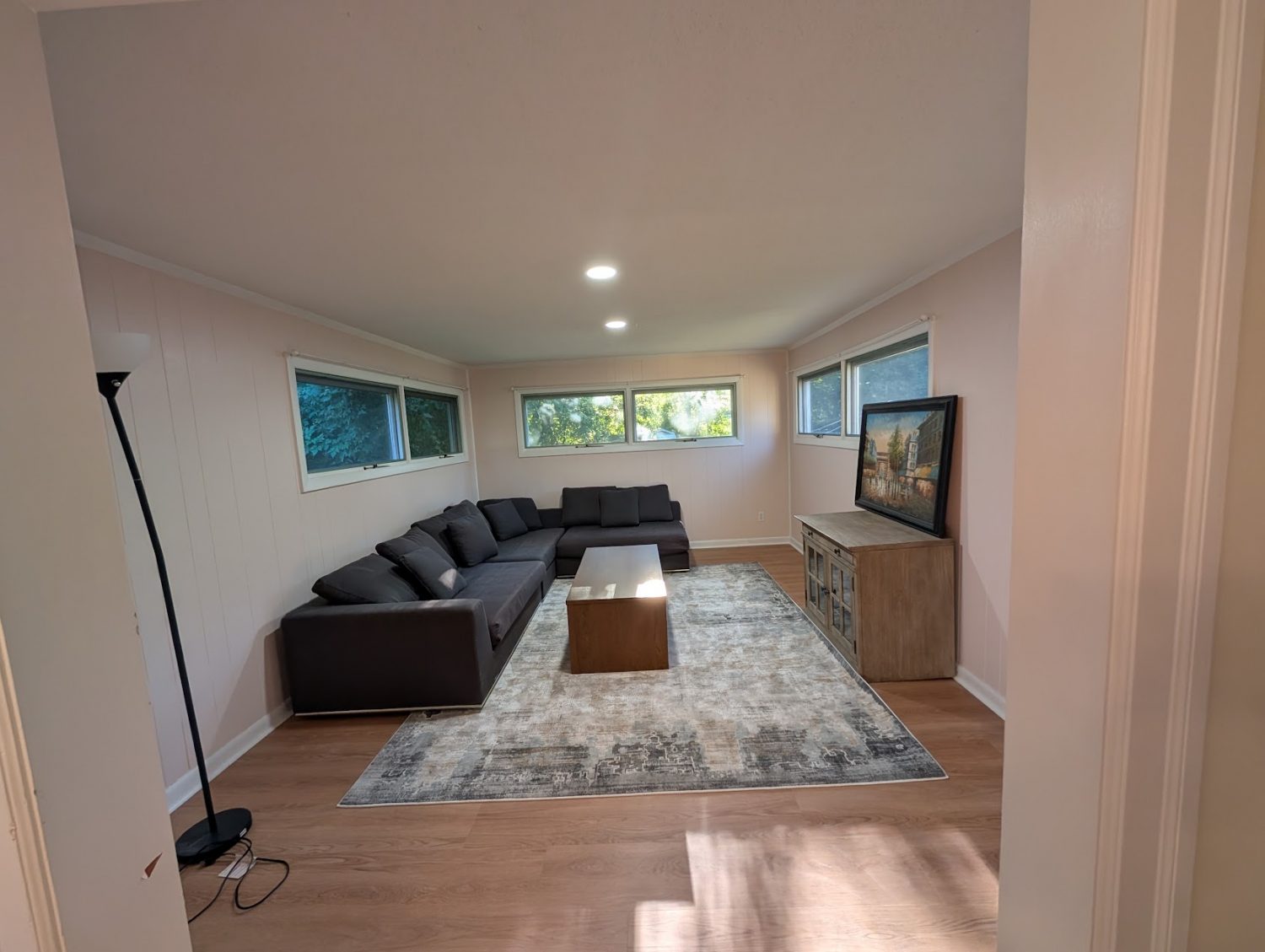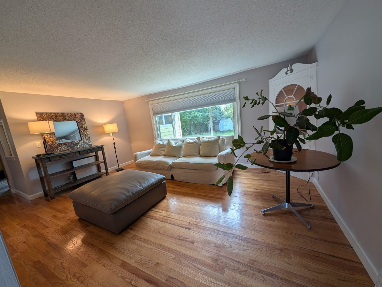This fully furnished 3-bedroom ranch has a smart, functional layout with two comfortable living spaces and everything you need to settle in quickly. The main living room gets plenty of natural light and has a relaxed, casual setup with a sofa and oversized ottoman. Around the corner, the second family room features a sectional couch, simple decor, and large windows looking out onto the backyard. Both spaces are great for lounging, reading, or low-key hangouts.