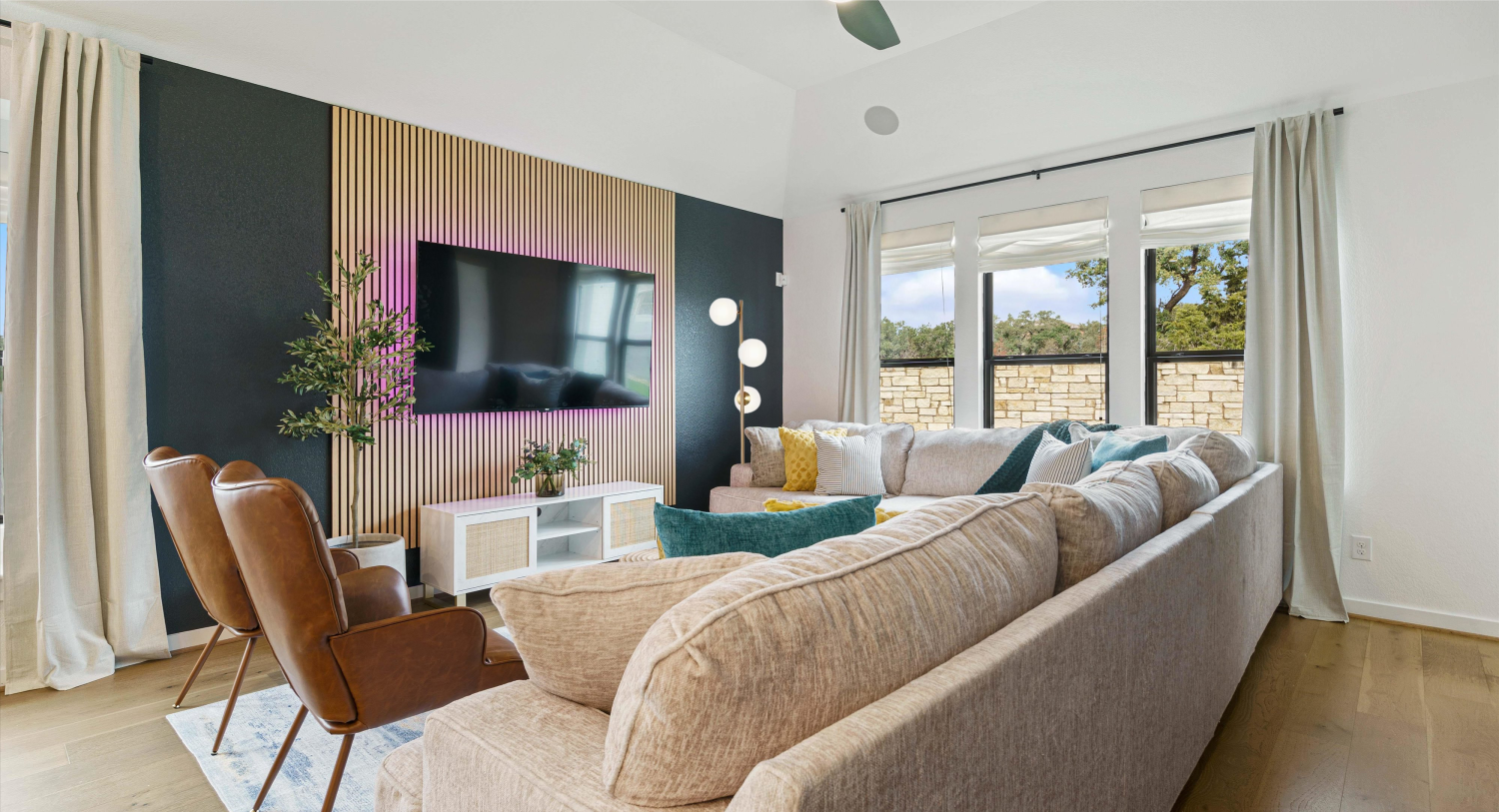 Modern, comfy retreat in Georgetown, TX is ideal for families or students needing temporary furnished home. It’s super close to both Wolf Ranch Town Center and H-E-B for easy shopping and dining. Southwestern University is also nearby. Community pool access