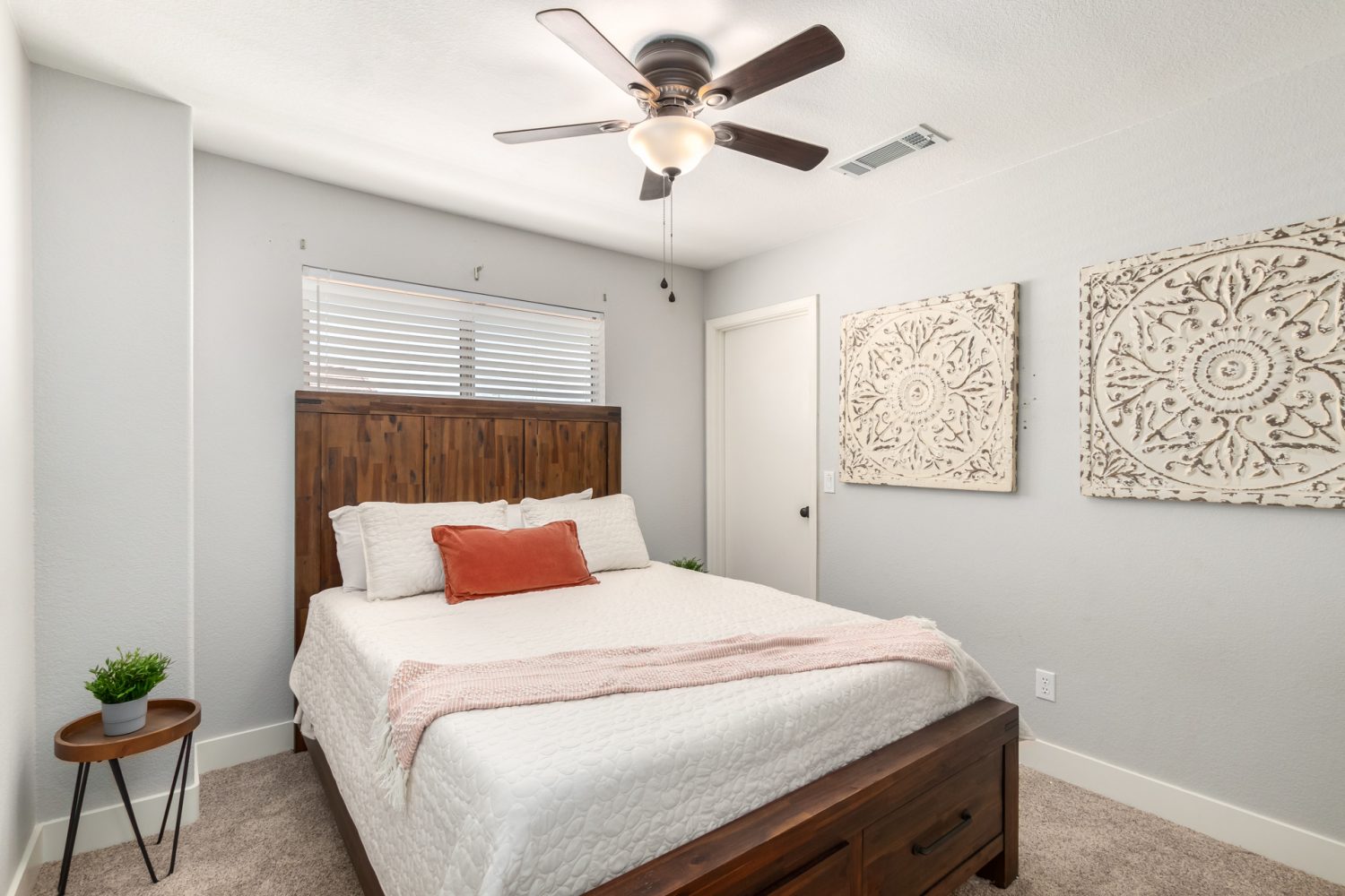 Spacious and comfortable single-family home located near the Mesa and Gilbert border with quick access to the US-60 freeway. The home features six total beds, sleeping up to eight guests, and includes four flat-screen TVs, high-speed internet, and all utilities. The kitchen is fully equipped and ready for use.