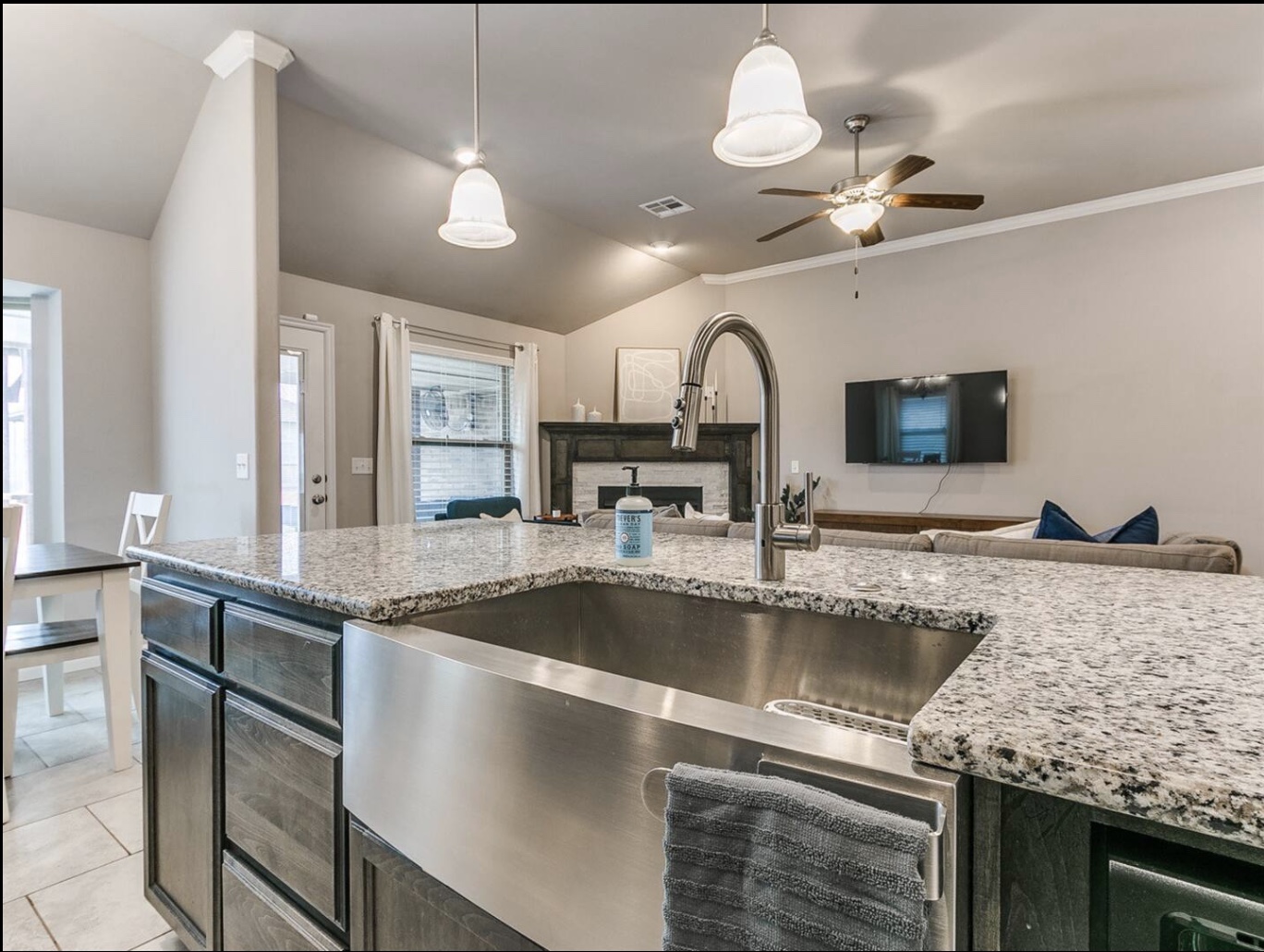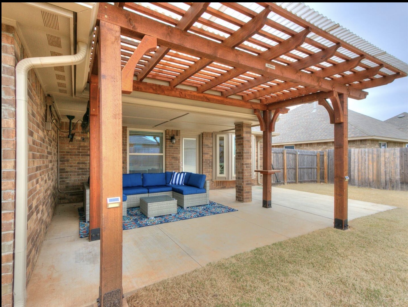 Escape the ordinary with this stunning 3-bed, 2-bath Edmond home! Perfect for families seeking a cozy retreat, it boasts a fully-stocked kitchen, fireplace-equipped living room, and spacious covered patio ideal for outdoor living. Nestled in a family-friendly neighborhood with parks and trails nearby, it's your home away from home. Stay 30+ days for tax-free living and community pool access. Why settle for less when you can have it all?