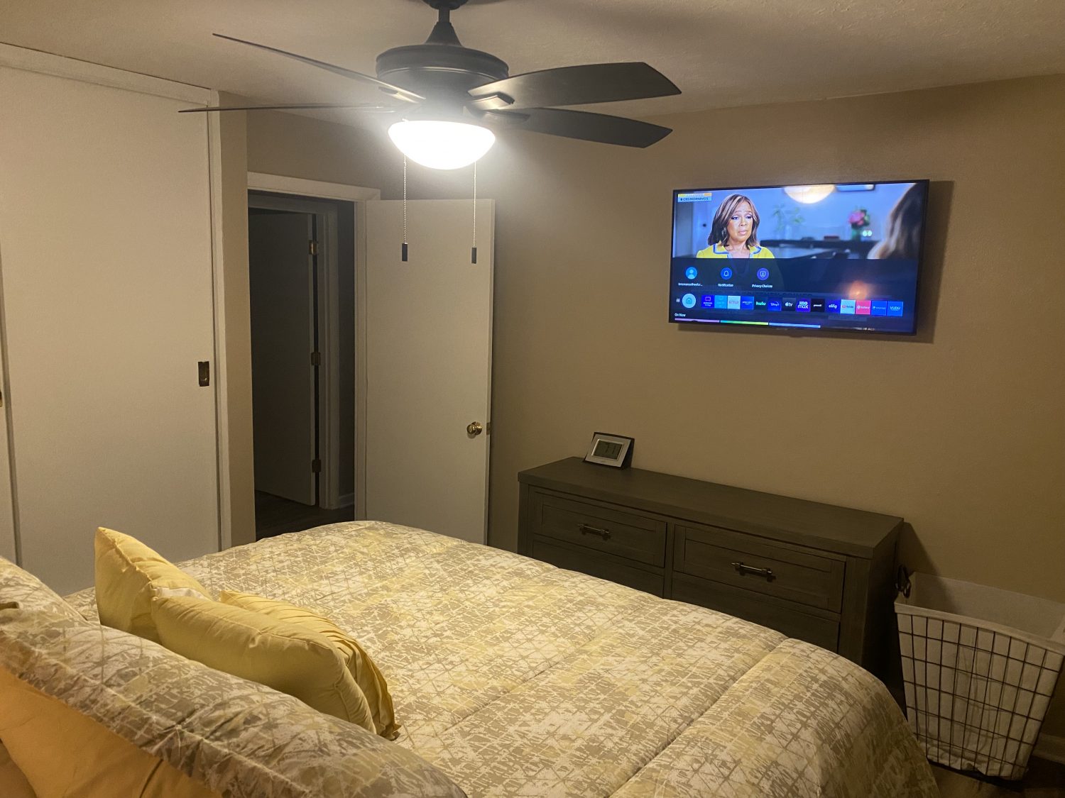 1 Story Brick Ranch, 3 bedrooms, 2 Full Bathrooms, 1 level property, fully remodeled, Master Bathroom, Stand up shower in hall bathroom, all bedrooms with king size retractable beds, covered rear patio, privacy fence, pet friendly