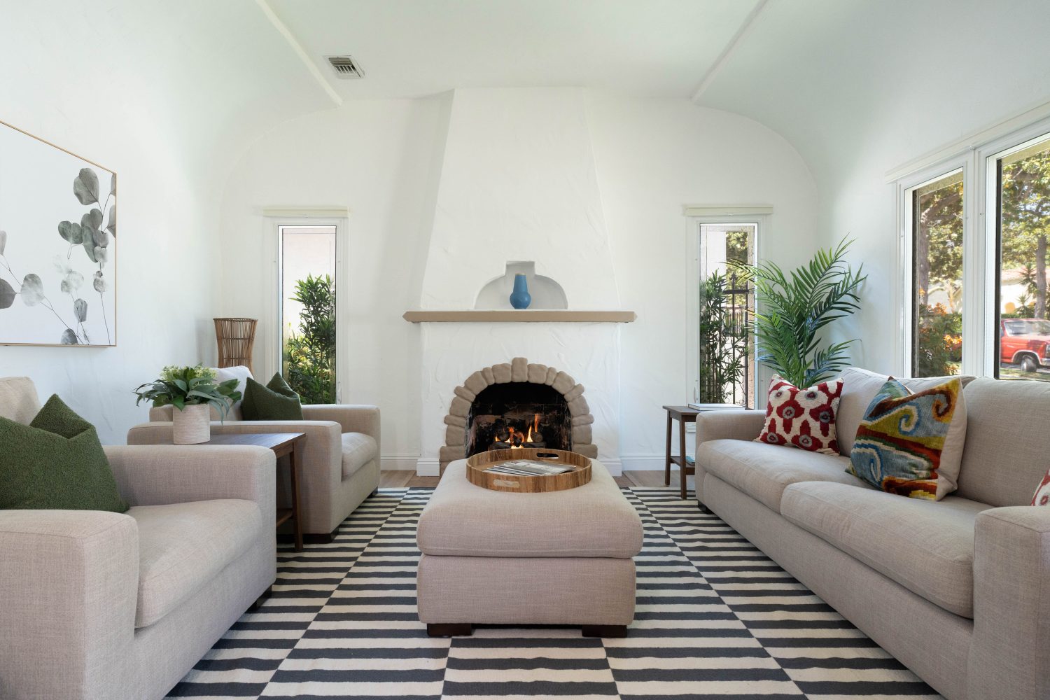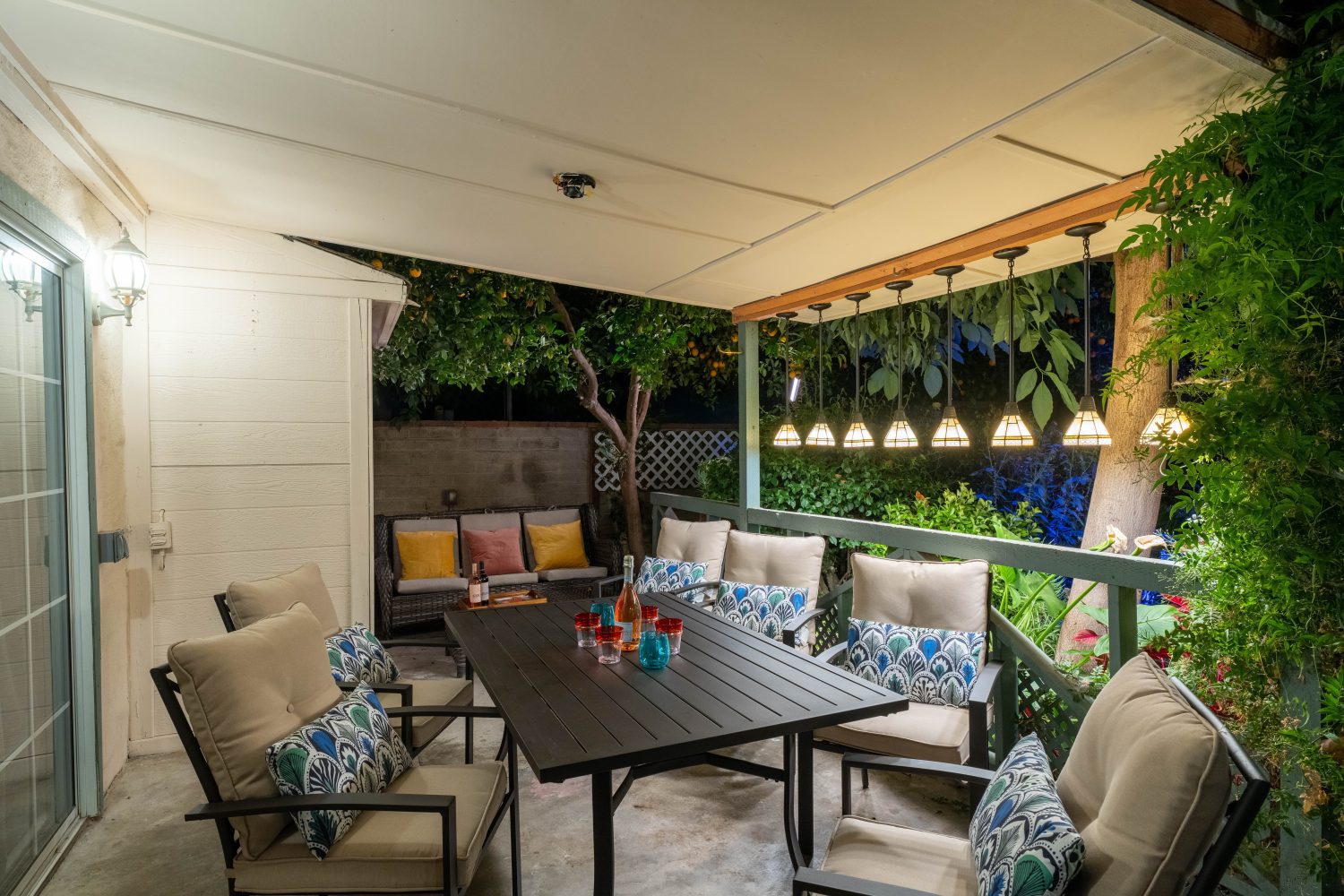 The backyard is encompassed by a sanctuary garden abound with dozens of flowers. All bedrooms have a charming overlook of the lush, flowery garden with a fairy green altar, lemon, orange, and tall avocado trees. The paradise backyard garden with an alfresco dining area, string lights, and BBQ grill is a true wonderland for your family and friends!