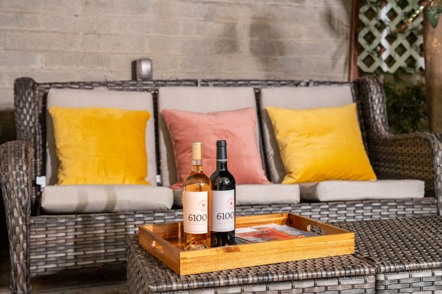 The living room with its pure white stucco walls, heavenly couch, polished stone fireplace, and hardwood flooring ensures a relaxing ambiance. While the dining area is certainly tempting for amiable evenings inside. There’s a fully equipped kitchen with Mediterranean-style mosaic and oak wood cabinets are suitable for any culinary recipes from your favorite chef. The master bedroom, which leads outside to the patio, features a luxurious king bed, magazine-style furnishings, an en-suite bathroom & a walk-in closet.