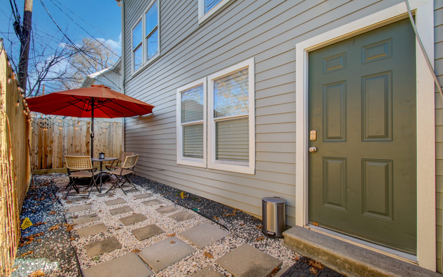 The entrance to the garage home has separate access from the alley with two parking spaces. This property sits behind the main house.
