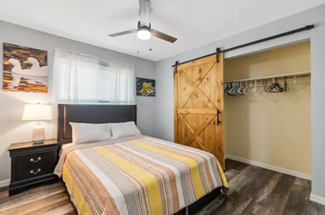 Great oversized private backyard, indoors enjoy fast WiFi, 55" SMART TV ,desk workspace ,and more.