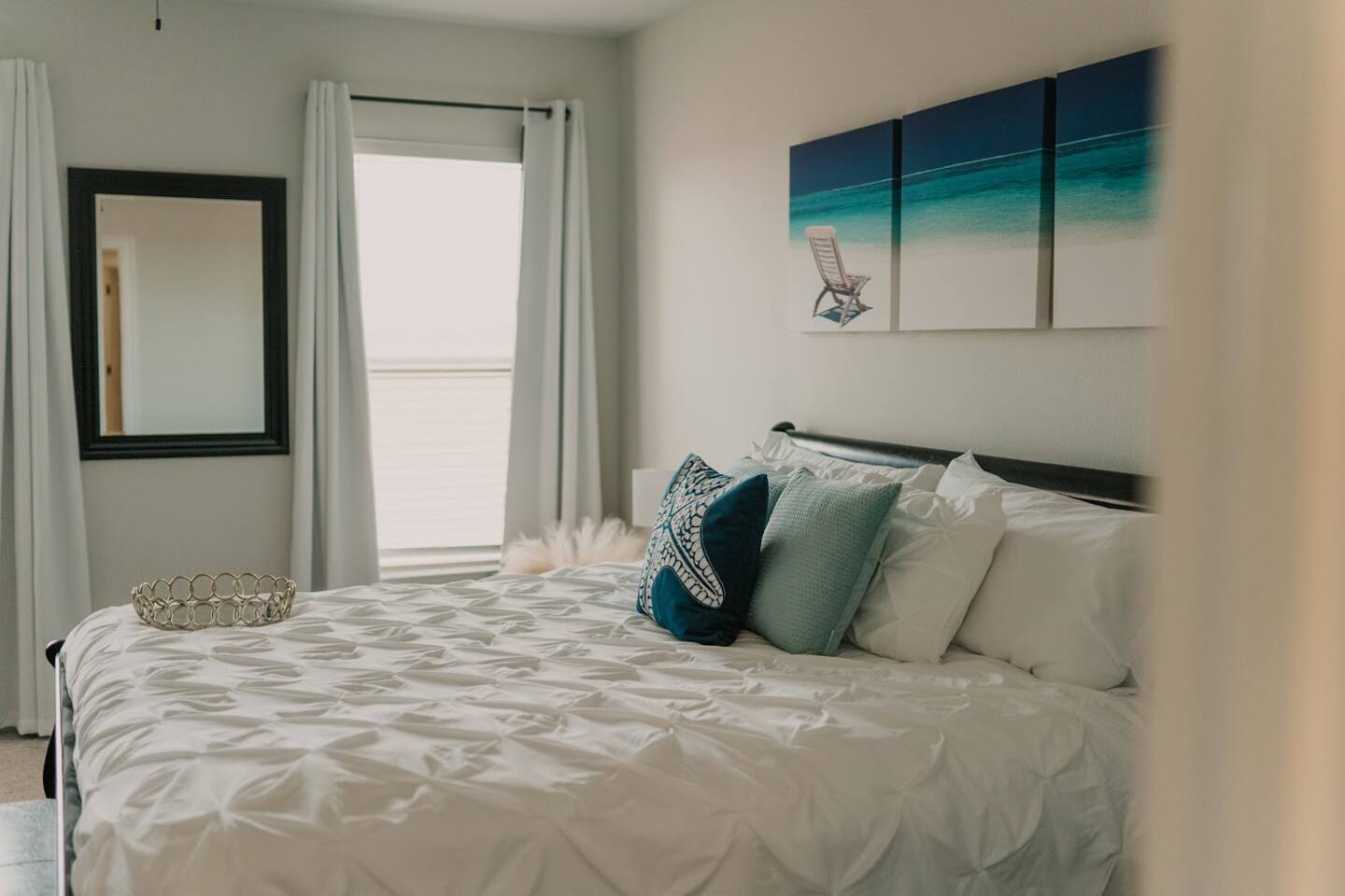 * Four bedrooms with new Serta mattresses, ample closet storage, and smart TVs.