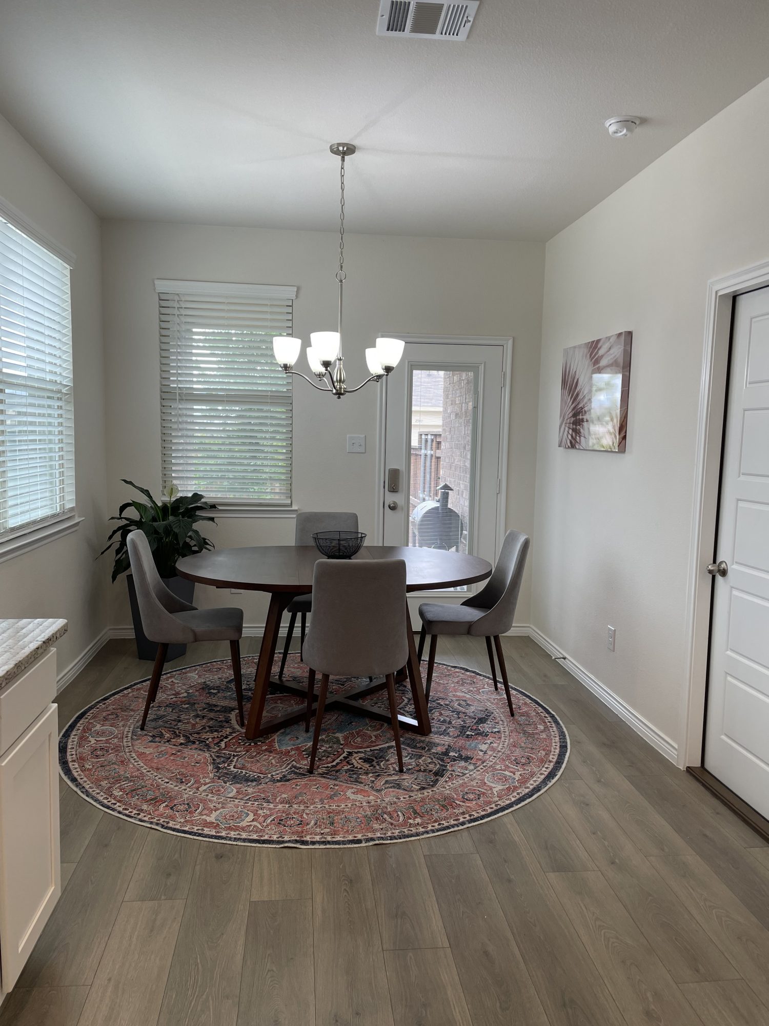 This home is nestled inside of quiet family friendly community walking distance to parks, dining, a community pool and minutes from downtown Ft. Worth. After entering you will saunter down the hall into an open floor plan home kitchen, dining and living room ares. The kitchen is well appointed with brand new appliances and all of the necessary accoutrements to prepare a meal during your stay. The home comes equipped with reliable wifi and everything that you need to sleep in comfort. Utilities and lawn care included