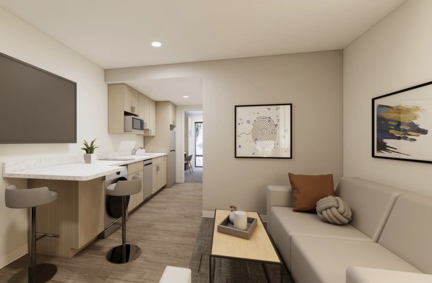 HomeAwhile offers comfortable, apartment-style accommodations designed for longer stays, relocations, and project-based travel. Conveniently located near the Portland area’s major employers, healthcare campuses, and business parks, the hotel provides spacious suites with full kitchens, flexible living space, and thoughtful amenities that help guests settle in and feel at home.