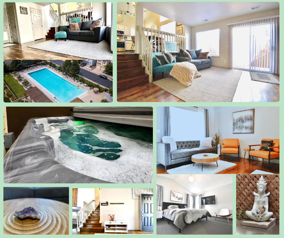 This home is Ideal for relocation or a temp work stay. A prime spot to navigate the Denver metro with easy access to downtown, Cherry Creek and the Denver Tech Center without getting on the highway. Coined the House of Gems, large majestic gems curate a soothing energy to the home. Primary bed features a 100lb amethyst assuring an easy transition into a deep sleep. 20lb quartz in the home work space cultivates focus and concentration. After a workout or a busy day relax in the hot tub.